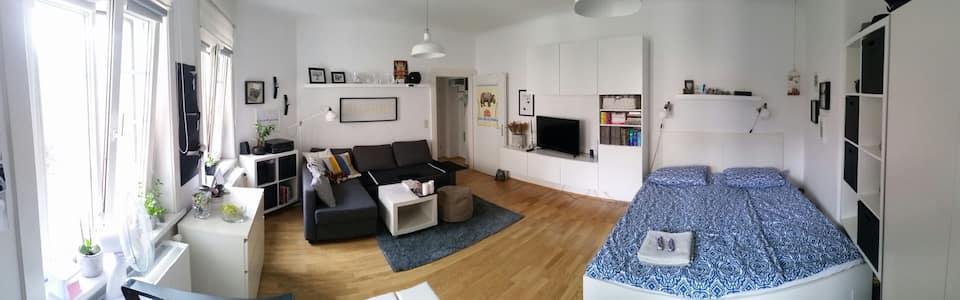Der Donaukanal ist für einen Erholungsspaziergang oder kurzen Lauf innerhalb von 5 Gehminuten erreichbar.