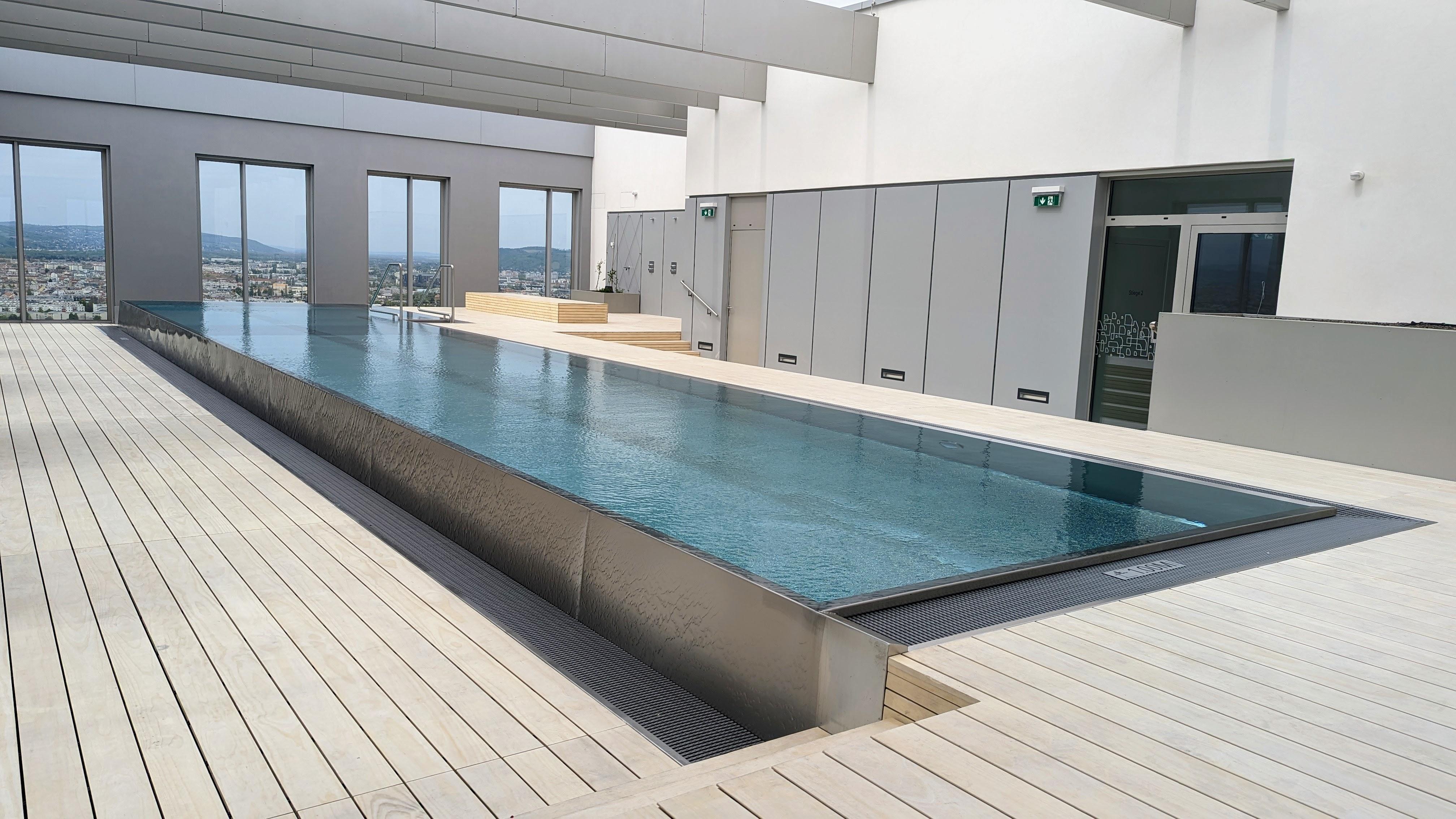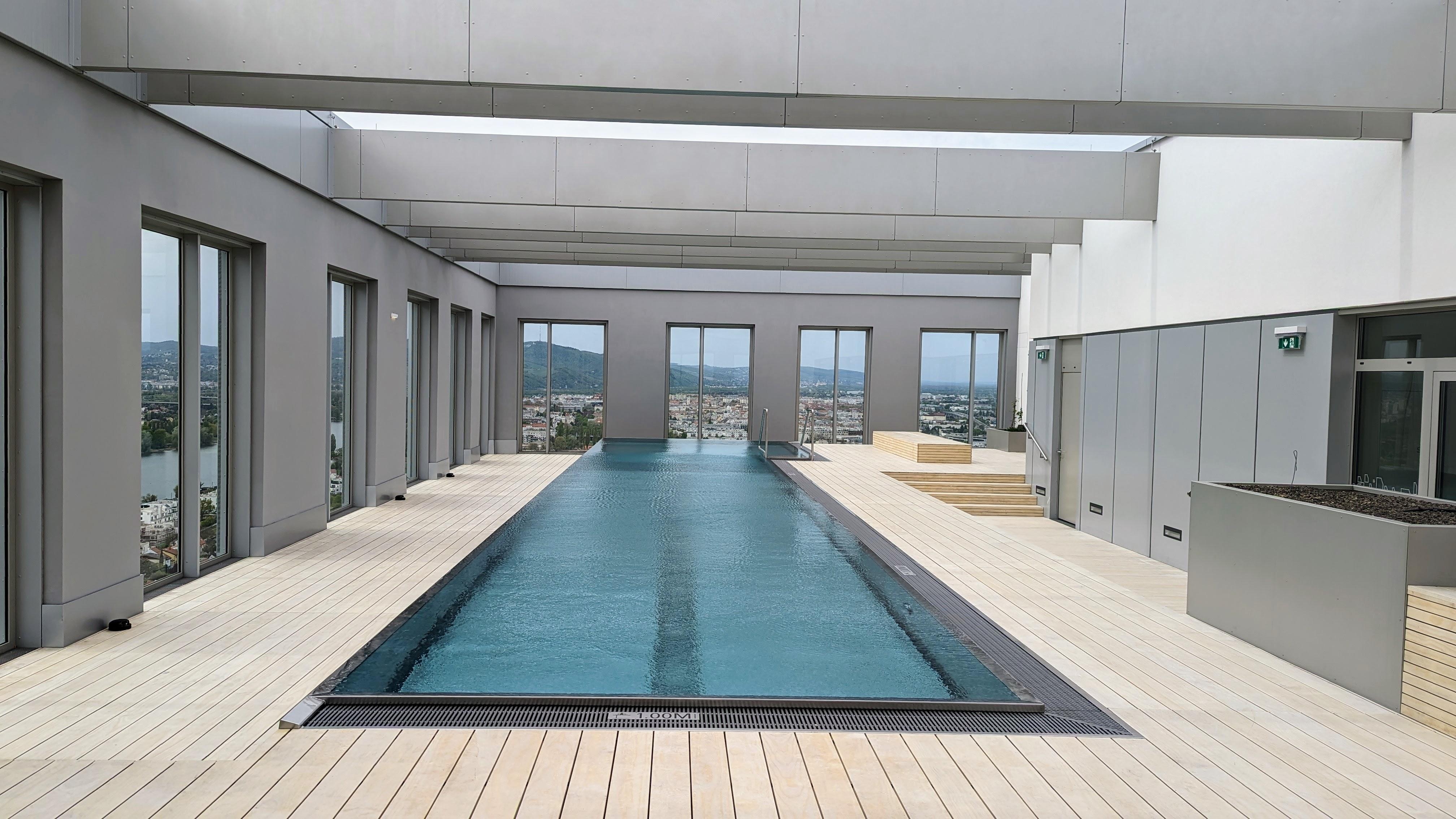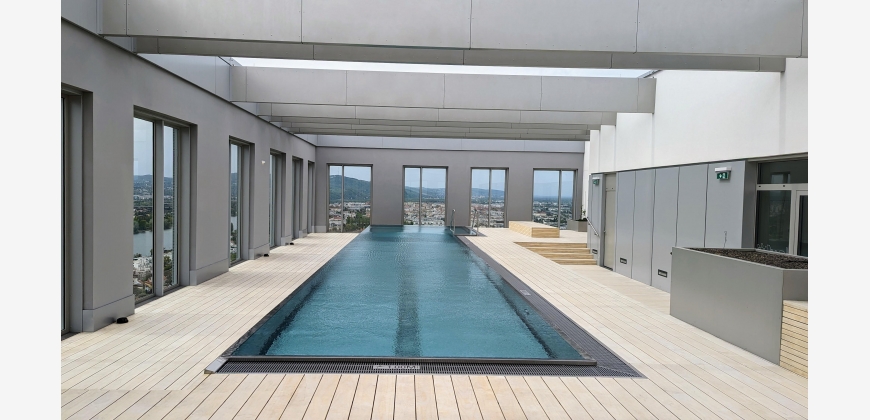 Der Pool im 33. Stock vermittelt echtes Urlaubsfeeling mitten in der Stadt – insbesondere in den Sommermonaten ein absolutes Highlight.