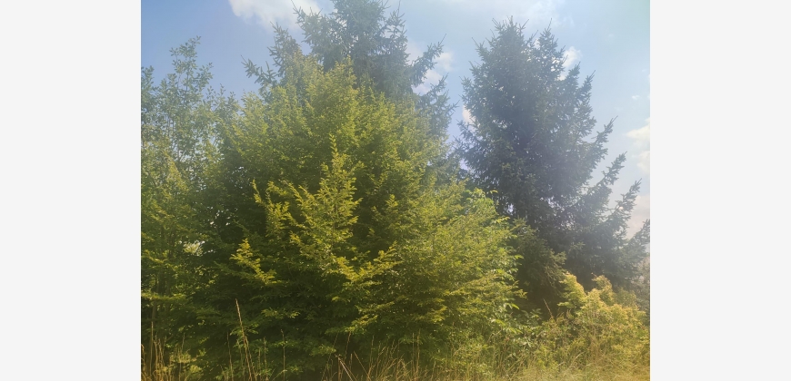 Zwei Grundstücke mit vielen Bäumen zu verkaufen, Grünland in ruhiger Lage, eines davon mit einem Gartenhaus