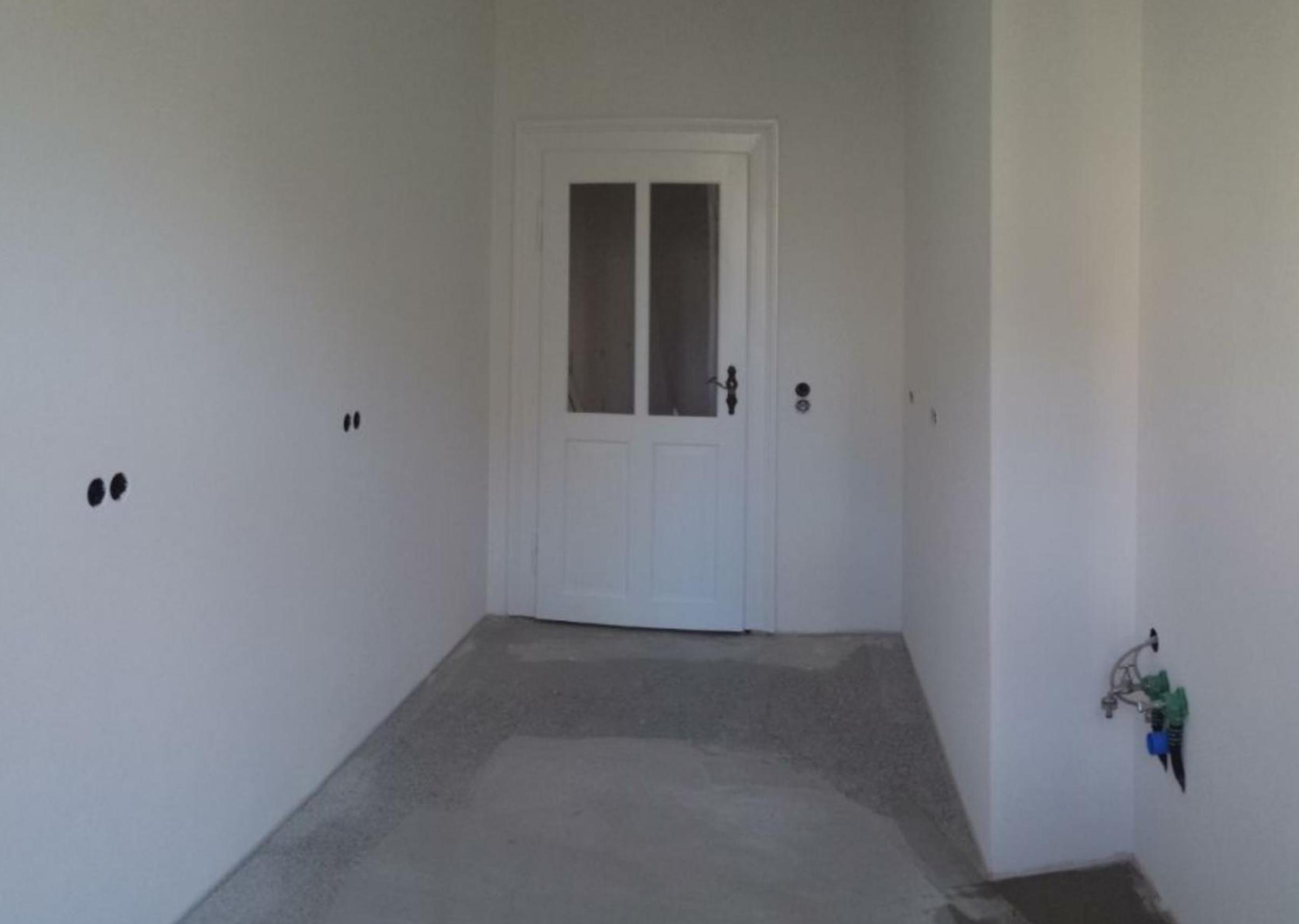 Eine weiße Küche mit allen Geräten wurde bereits installiert. Original Fischgrätparkett in 4 Zimmern und im Flur, Fliesen in Bad und Küche.