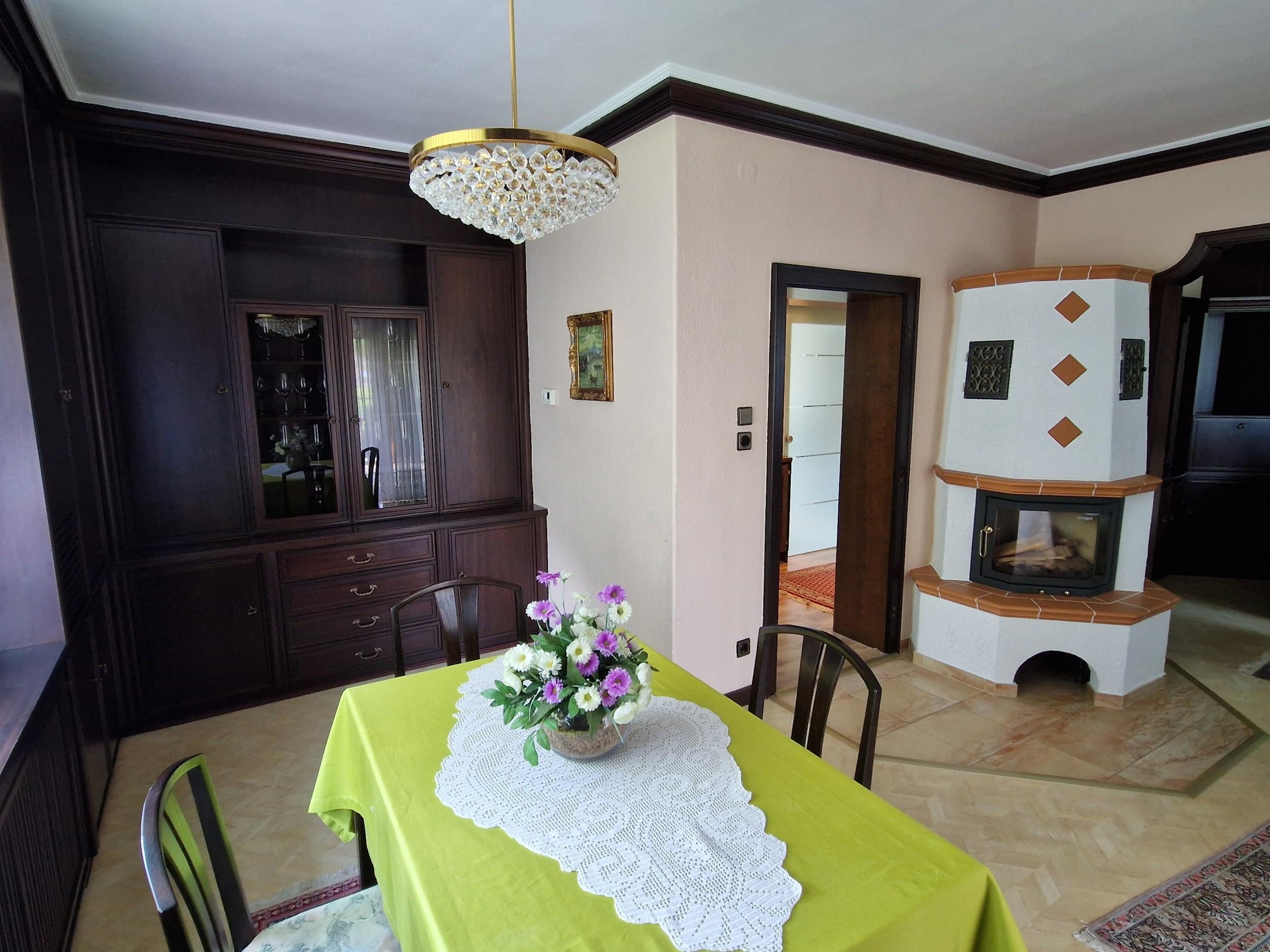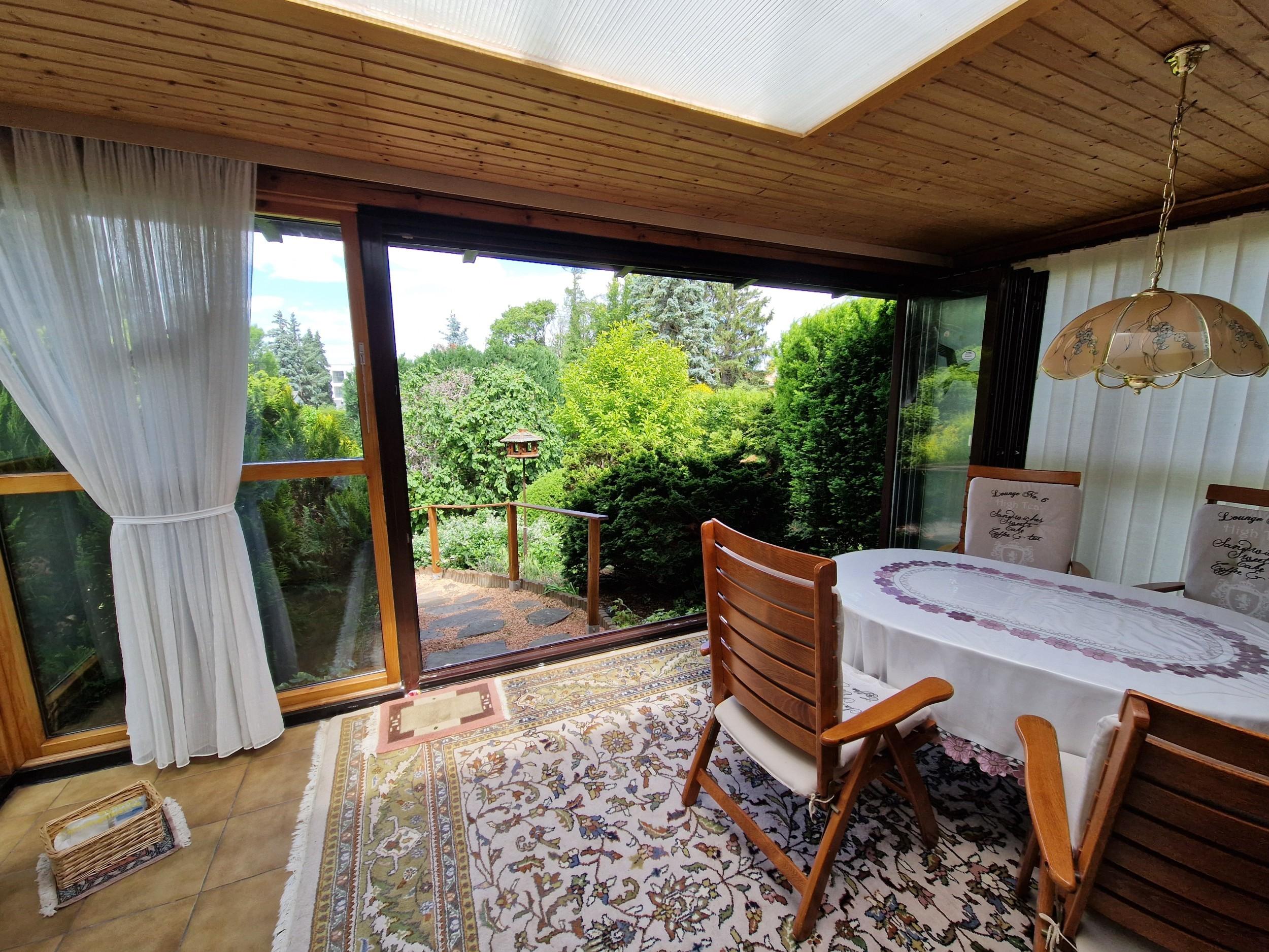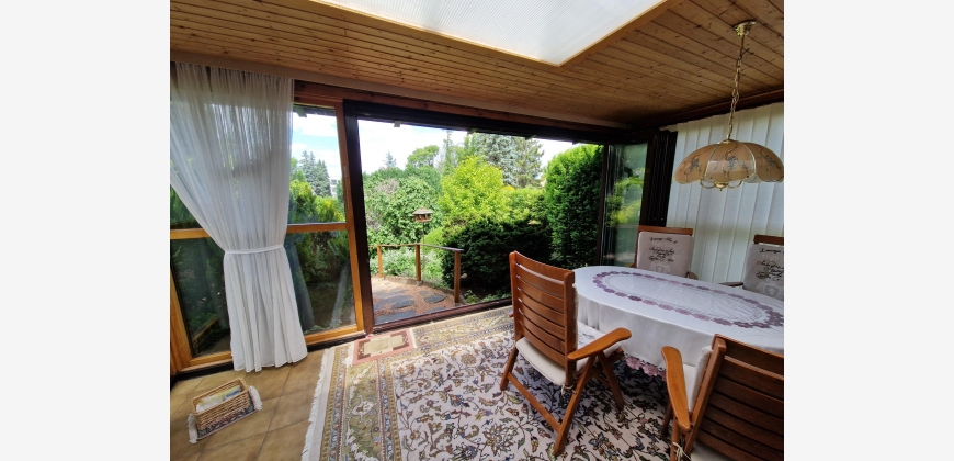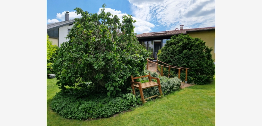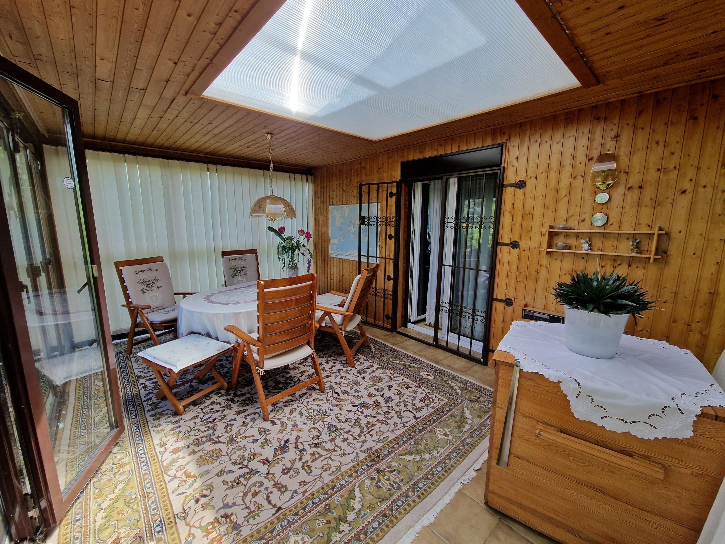 Die überwiegend maßgefertigten Möbel in Tischlerqualität sowie der exklusive Kaminofen verleihen dem Interieur eine warme, natürliche Note und unterstreichen den exklusiven Charakter des Hauses. Der lichtdurchflutete Wintergarten lädt sowohl bei schönem als auch bei schlechtem Wetter zum erholsamen Verweilen ein.