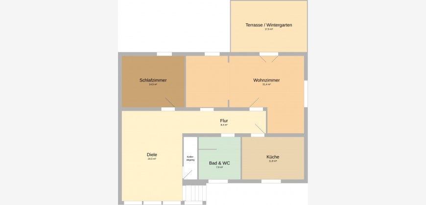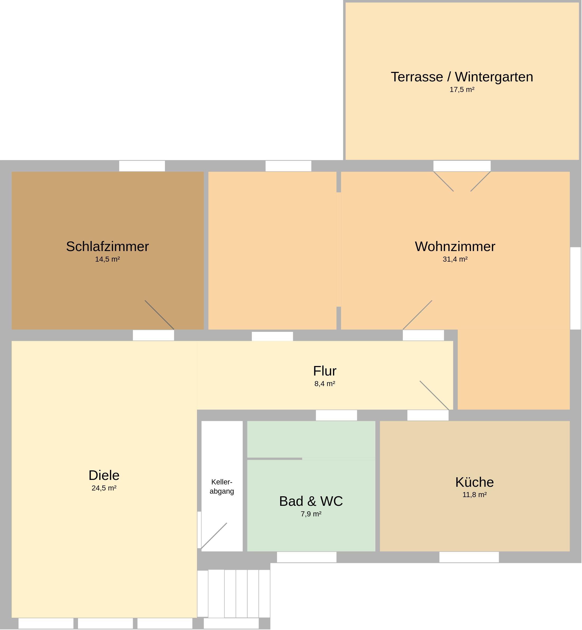 Anmerkung: das Erdgeschoss sowie der Eingangsbereich wurden rollstuhlgerecht umgebaut (Treppenlift im Eingangsbereich).