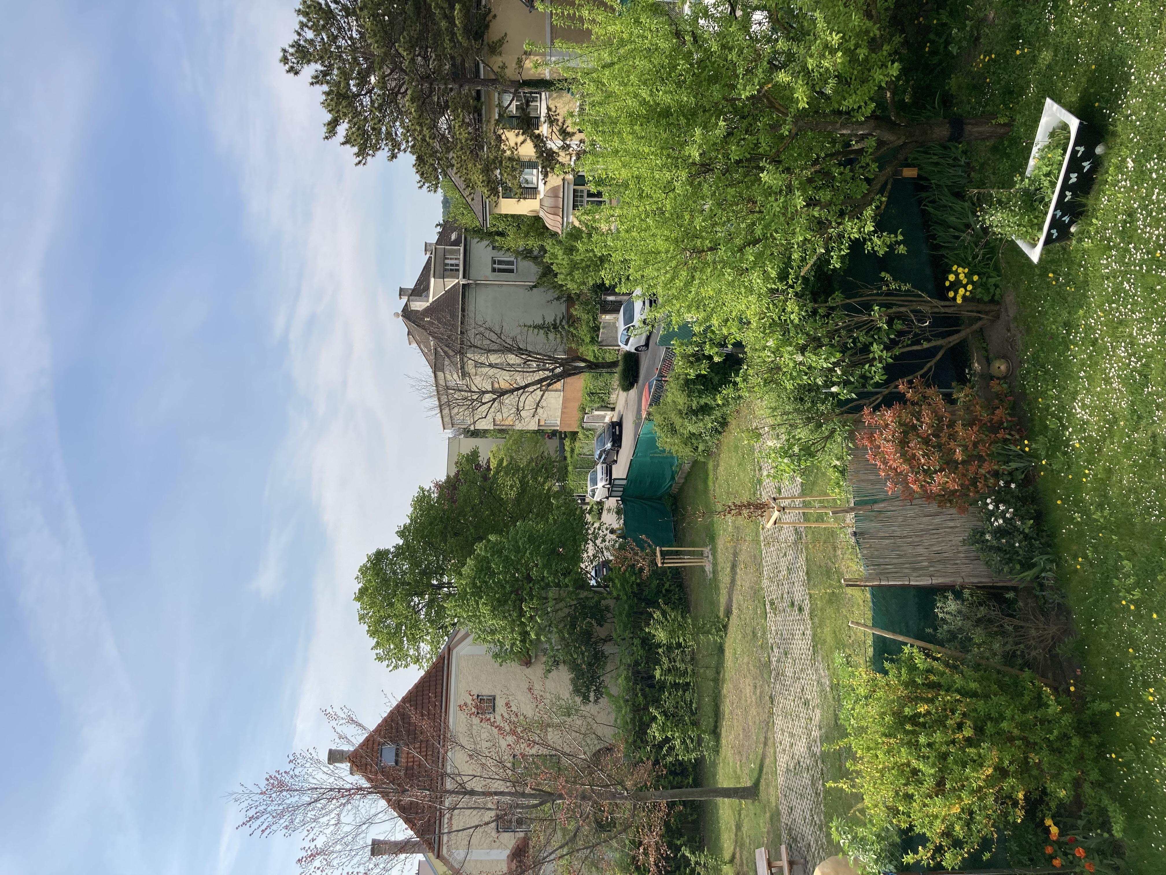 Ein großer, gepflegter Garten ist Teil der Liegenschaft, wobei ein Anteil für die Mieter:innen zur gemeinschaftlichen Nutzung zur Verfügung steht.