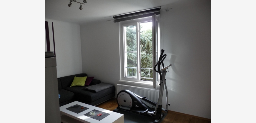Die Wohnung besteht aus Vorzimmer, Küche, Bad, getrenntem WC, Wohnzimmer mit Balkon, Schlafzimmer, kleines Kellerabteil. Alle Zimmer Innenhofseitig.