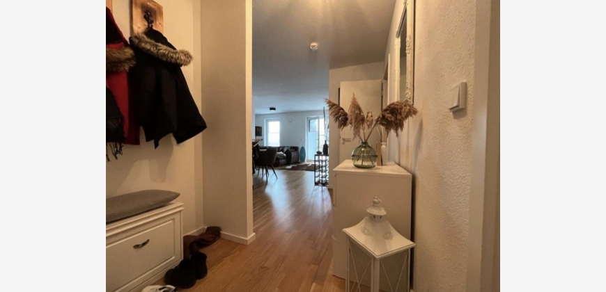 Die offene Küche ist mit Geräten von Bosch, Siemens und Bauknecht ausgestattet, sodass kein zusätzlicher Einkauf von Haushaltsgeräten erforderlich ist. Durch die gute Isolierung ist die Wohnung im Winter angenehm warm, und die Fußbodenheizung sorgt für behagliche Temperaturen. Ein praktischer Abstellraum bietet Platz für die Waschmaschine und andere Haushaltsgegenstände.