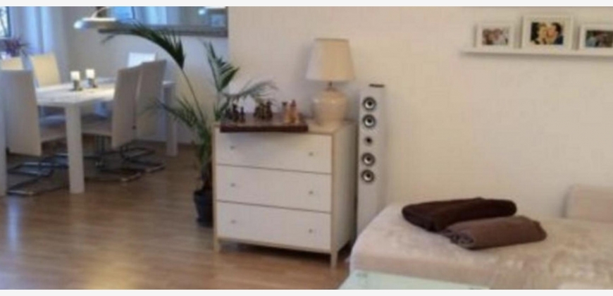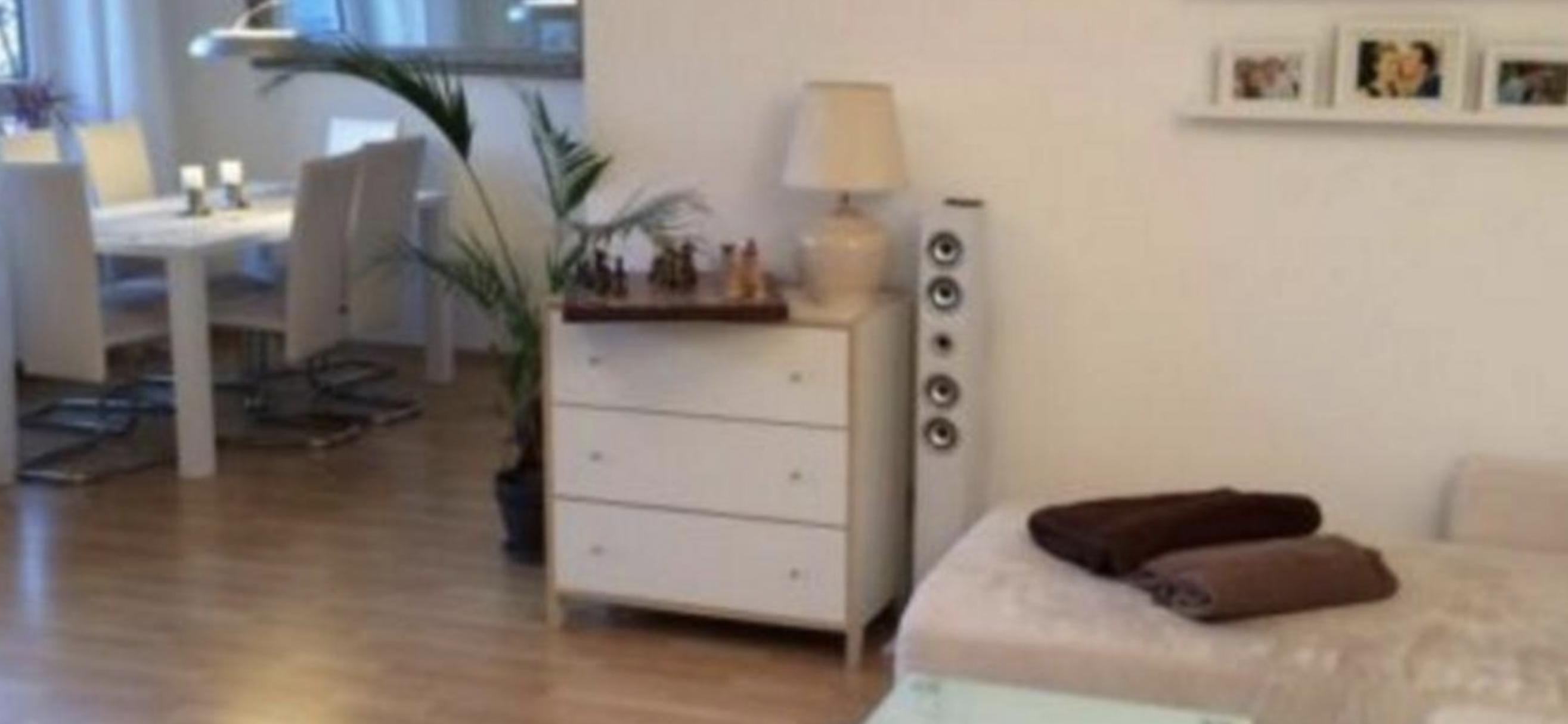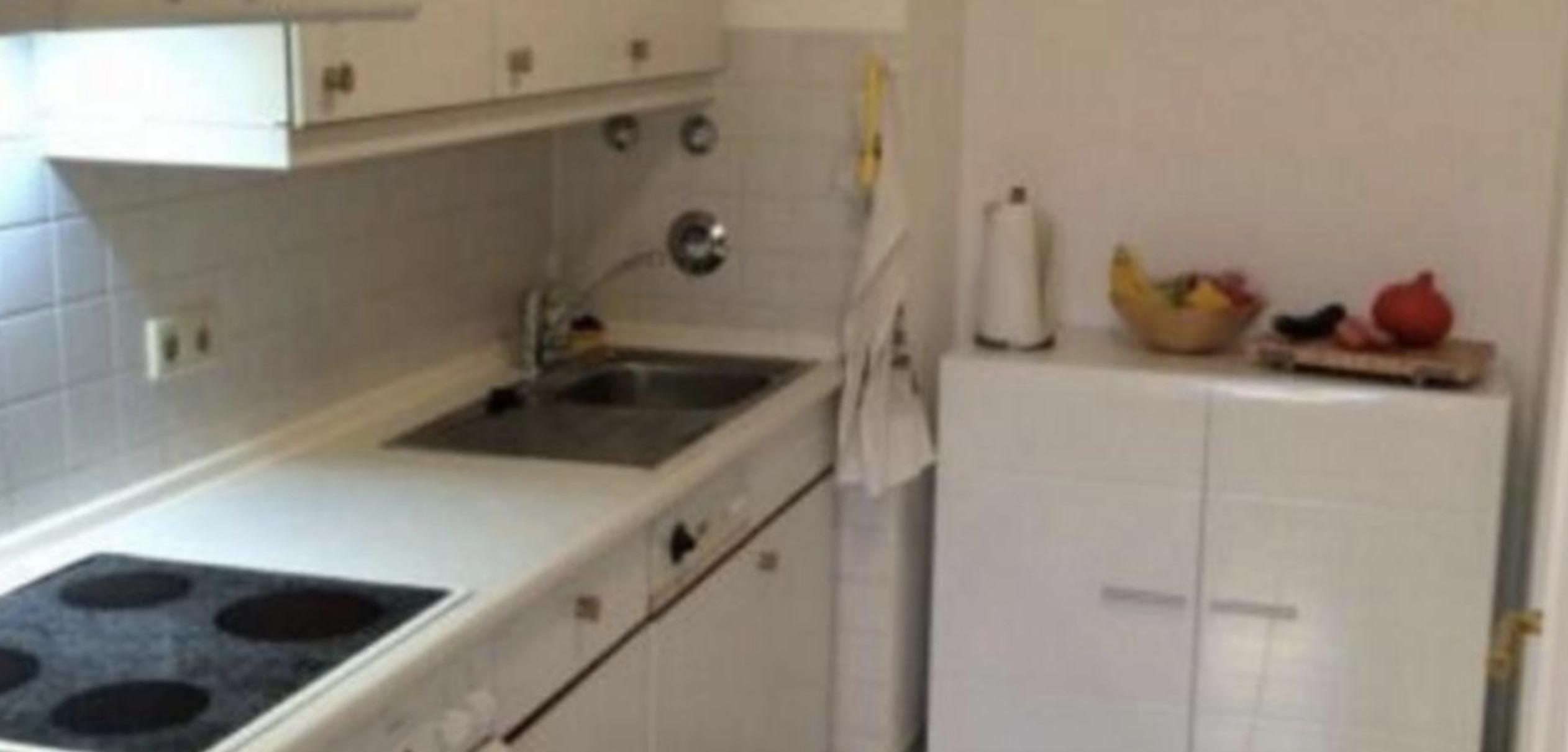 wohnzimmer mit ausgang zum balkon, geräumige küche, schlafzimmer