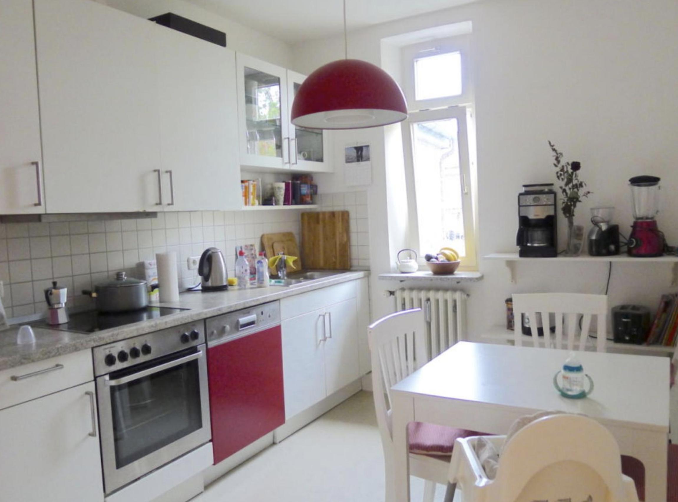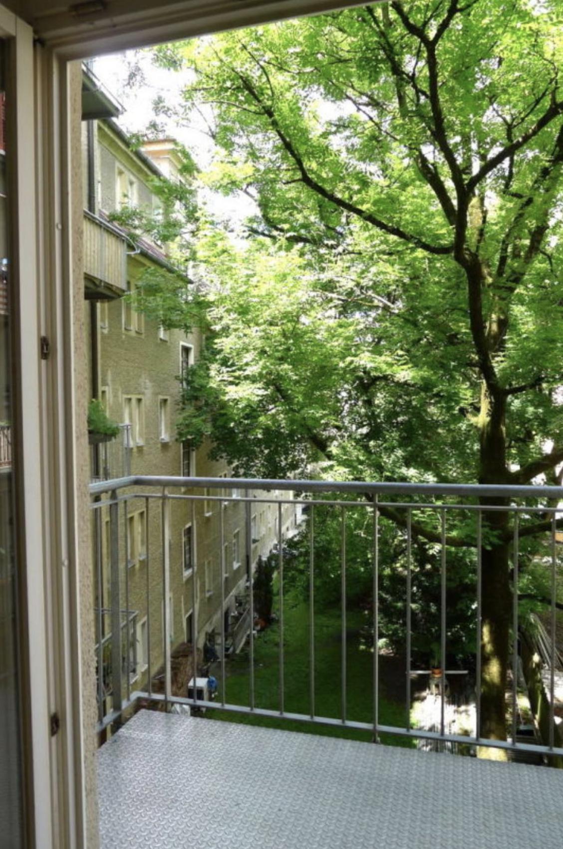 In dieser Wohnung werde ich morgens von der Sonne geweckt, mache die Balkontür auf und schaue runter in unseren kleinen Innenhof. Dann mache ich mir Frühstück und setz mich draußen in die Sonne um den Tag gemütlich zu beginnen.