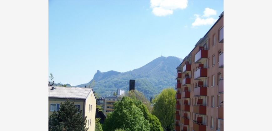 Die helle 2 Zimmer Wohnung liegt im 5. Stock mit Lift in Salzburg Lehen, in der Nähe von der Bibliothek. Sie verfügt über einen Wohnraum mit Ausgang zum Balkon (ca. 6 qm) und Ausblick zum Gaisberg, ein getrennt begehbares Schlafzimmer, einen Vorraum, ein Bad mit Wanne, sowie eine Küche. Die Böden sind Parkett. Die Wohnung ist mit Bus Linien 2, 4, 8, 12 und 24 gut zu erreichen. Mit dem Fahrrad ist man in 10 Minuten in der Innenstadt. Es sind eine allgemeine Waschmaschine und Waschküche mit Trockner vorhanden. Eigenes Kellerabteil. Infrastruktur: Interspar, DM, Apotheke, S-Bahn-Station in 6 Min. zu Fuß, Bus 100 Meter. Miete € 534 inkl. BK, zzg. € 54 Zentralheizung. Bezug ab sofort.