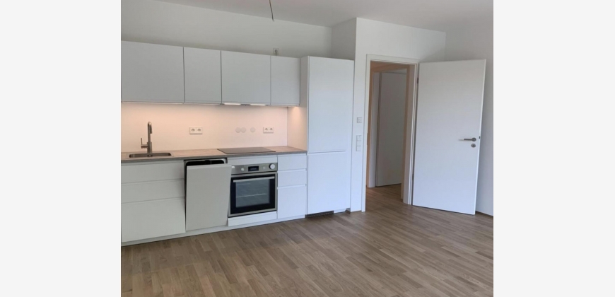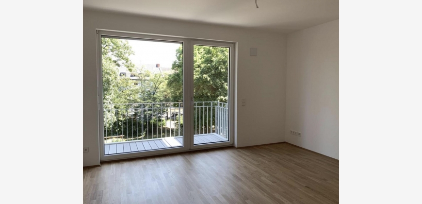 Wohnküche mit Balkon Richtung begrünter Innenhof
