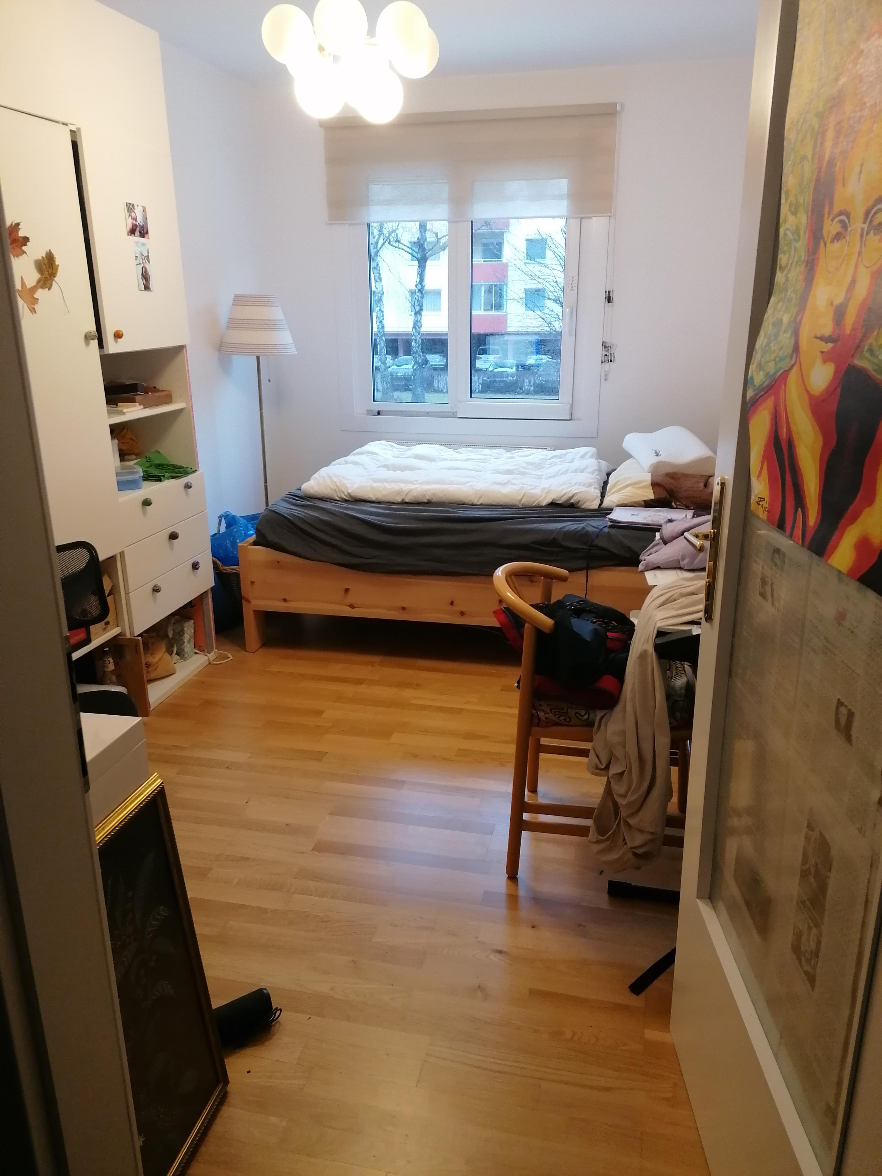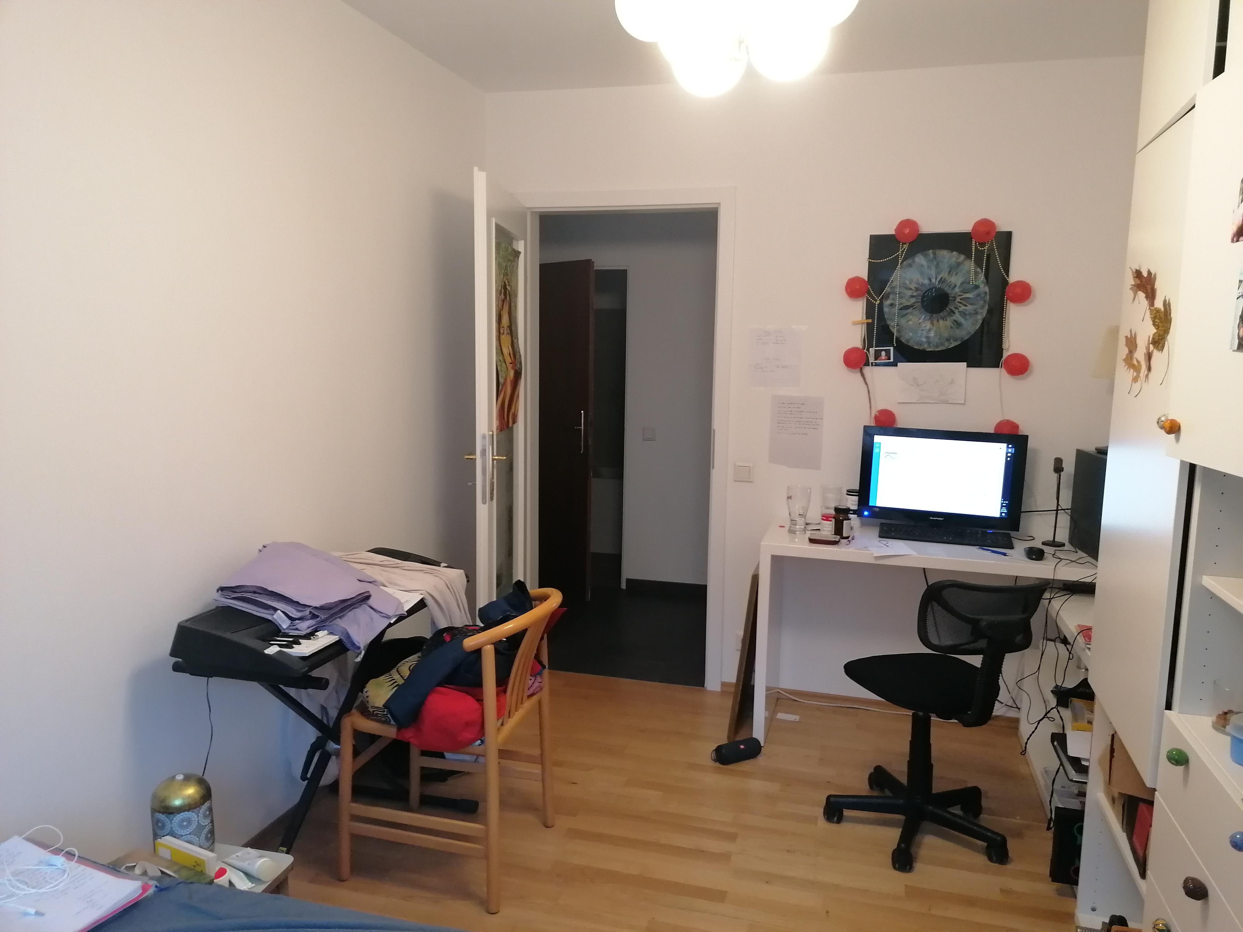 Mit den Außenrollos kann man das Zimmer völlig verdunkeln. Die Wohnung ist sehr ruhig, da sie hofseitig ausgerichtet ist und man kann mit geöffnetem Fenster schlafen. Die Nachbarn sind hilfsbereit und ruhig.