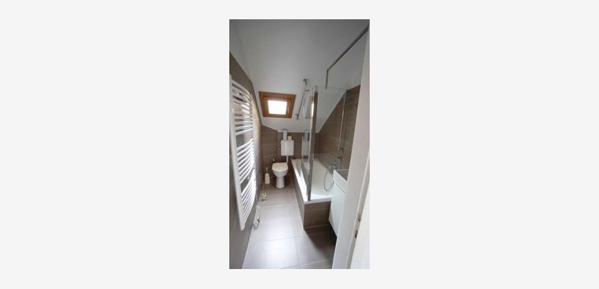 Raumaufteilung: Diele/Gang, Badezimmer mit Dachfenster, Wanne und WC sowie elektrischem Heizkörper,