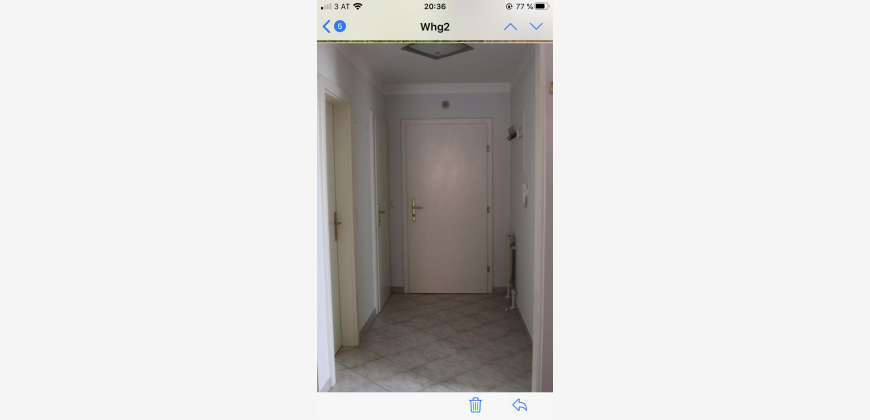 Von einem großzügig angelegten Vorraum betritt man das separate WC, das Badezimmer mit Badewanne, das Schlafzimmer; geradeaus kommt man in das lichtdurchflutete Wohnzimmer, von welchen man in die Küche gelangt. Die Küche ist möbliert mit Geräten.