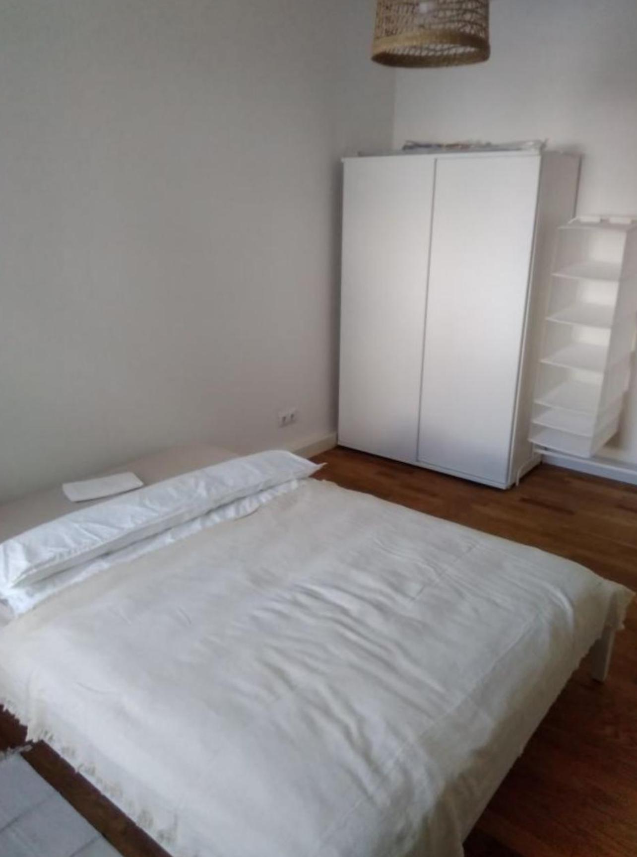 Schlafzimmer: großes Doppelbett , 2-teiliger Schrank, Vorhang