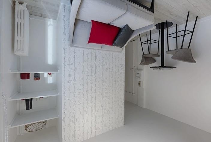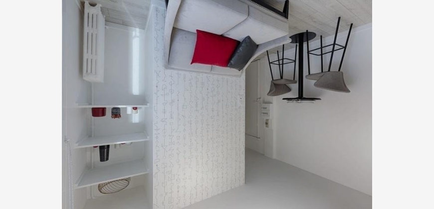 Möblierte 1-Zimmer-Wohnung mit Stauraum (Kleiderschrank, Kommode, Regale, Tisch)