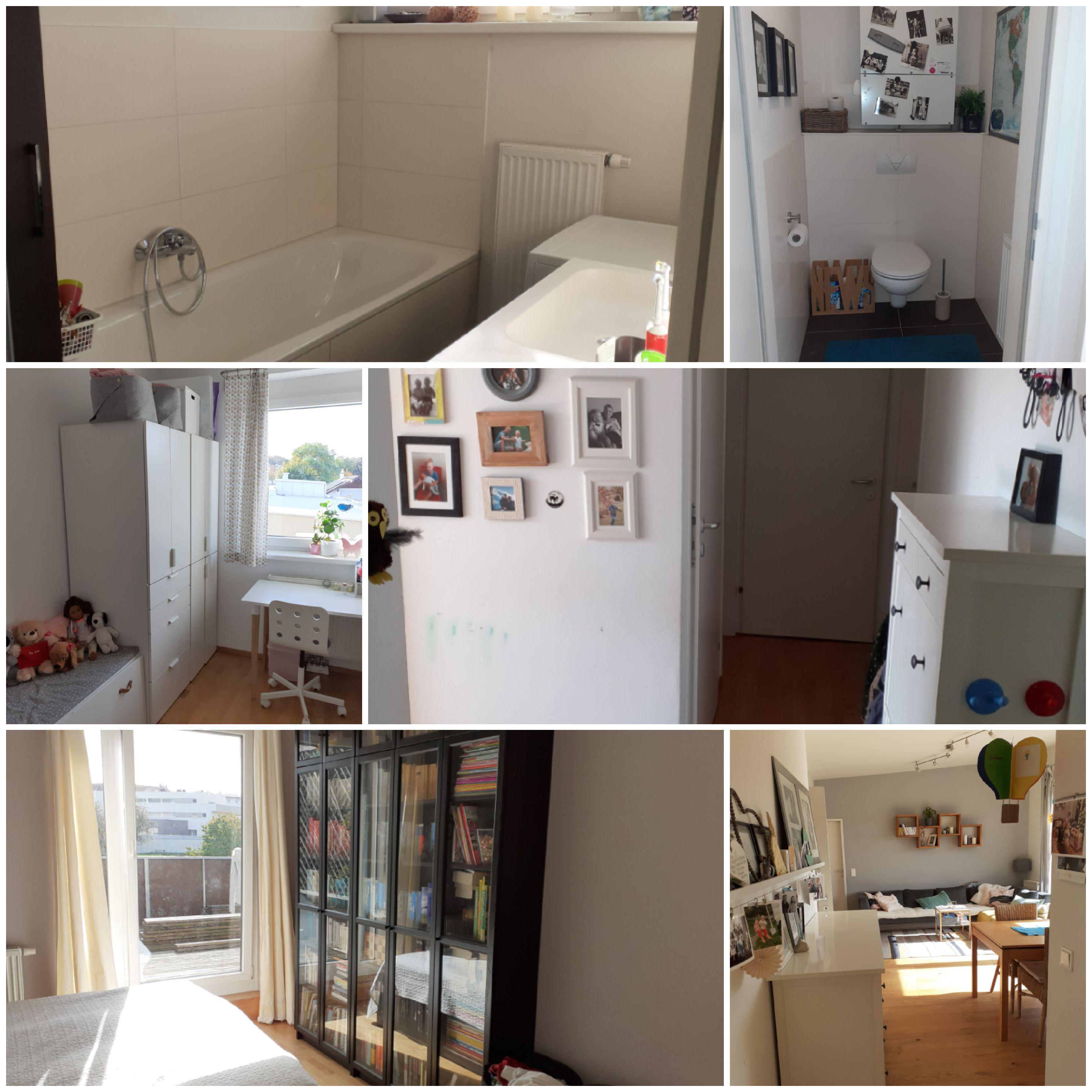 3- Zimmer, großes Wohn/Esszimmer, Küche, große Dachterrasse plus großer Abstellraum, Bad mit Dusche und Badewanne, WC, 2 Garagenstellplätze und 1 Kellerabteil inkludiert