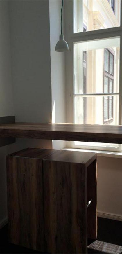 Die Designwohnung befindet sich im 3. Stock mit Lift und in Toplage im 2. Bezirk, Nähe Webster University, Inlokal Mochi und Sofitel. Jeden Morgen erfreut man sich am wunderschönen Blick in den Innenhof und in den Himmel. Die sonnige Wohnung, im MItteltrakt eines Barockpalais gelegen, ist sehr ruhig, komplett saniert, mit neuen Geräten ausgestattet (neue Vaillant Therme) - Erstbezug. Sie verfügt über 2 Zimmerà ca 20 m2, beide sind südseitig ausgerichtet, mit je einem TV, Bett, Tisch und Sesseln ausgestattet. Die Design-EinbauKüche, ca 12 m2, mit Backrohr, Geschirrspüler, Kühlschrank und Bartisch, ist extra begehbar, ebenso wie das Bad mit Dusche