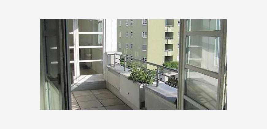 Die Aufteilung der jeweils seperat begehbaren Räume: Vorzimmer,großes Wohnzimmer(22m²), Küche,Schlafzimmer(14m²),Balkon(von beiden Zimmern begehbar),Bad mit Wanne, kleineres Zimmer (10m²),WC. Die Wohnung ist in Richtung Süden und zur Innenseite des Wohnparks orientiert und bietet einen wunderbaren Grünblick.