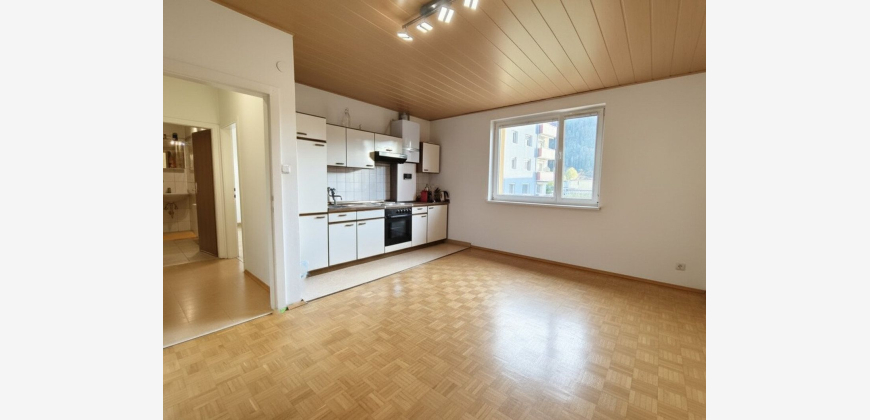 Das Zentrum von Kindberg mit Einkaufsmöglichkeiten, Cafés, öffentlichen Einrichtungen und weiteren Angeboten des täglichen Bedarfs erreichen Sie bequem in nur etwa 2 Gehminuten. Die Wohnung überzeugt durch eine durchdachte Raumaufteilung. Sie betreten die Wohneinheit über einen einladenden Vorraum, der ausreichend Platz für Garderobe und Stauraum bietet. Von hier aus gelangen Sie in das großzügige Schlafzimmer sowie in das helle Wohnzimmer mit integrierter Kochnische und Einbauküche