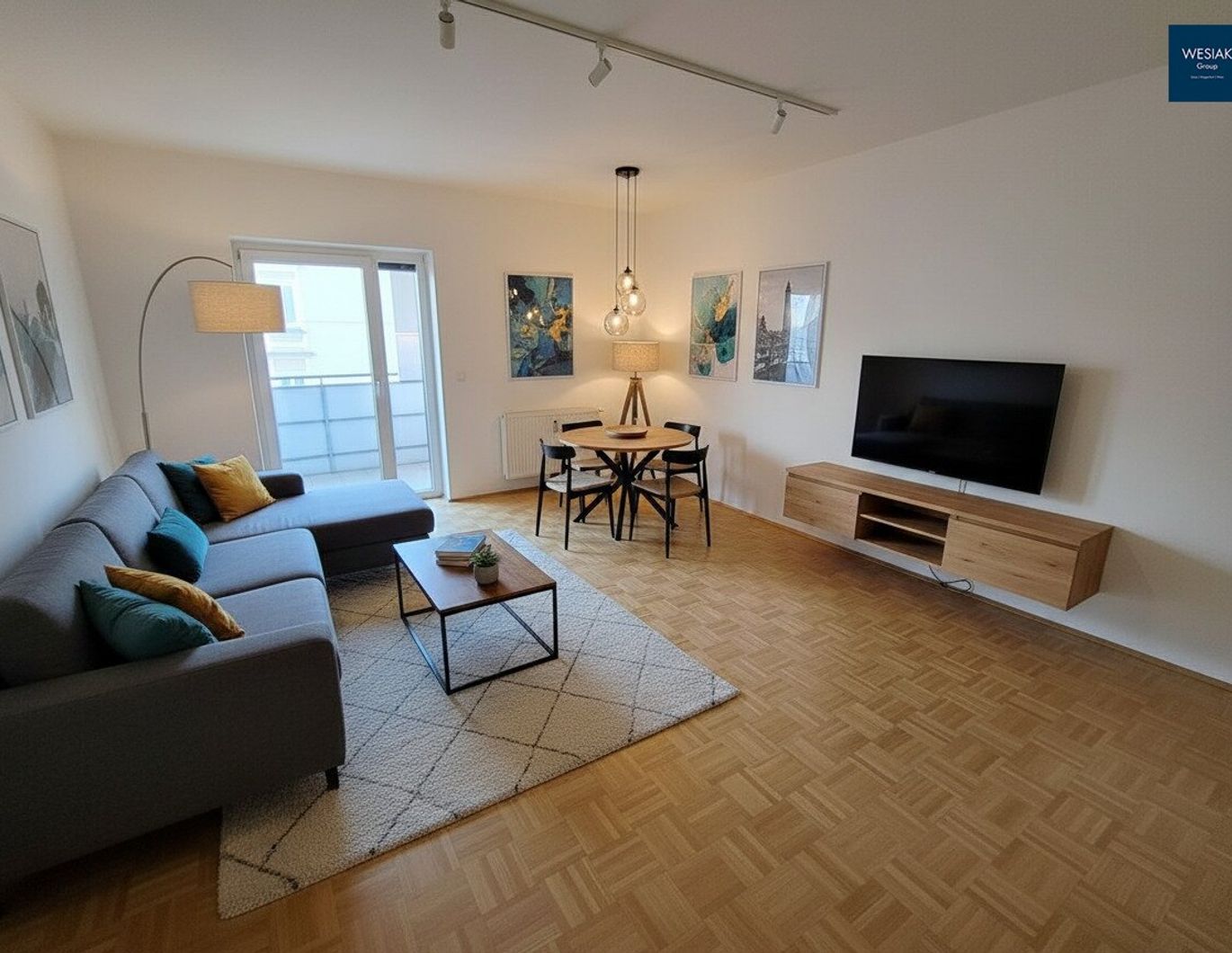 sowie ein helles, freundliches Wohnambiente .
