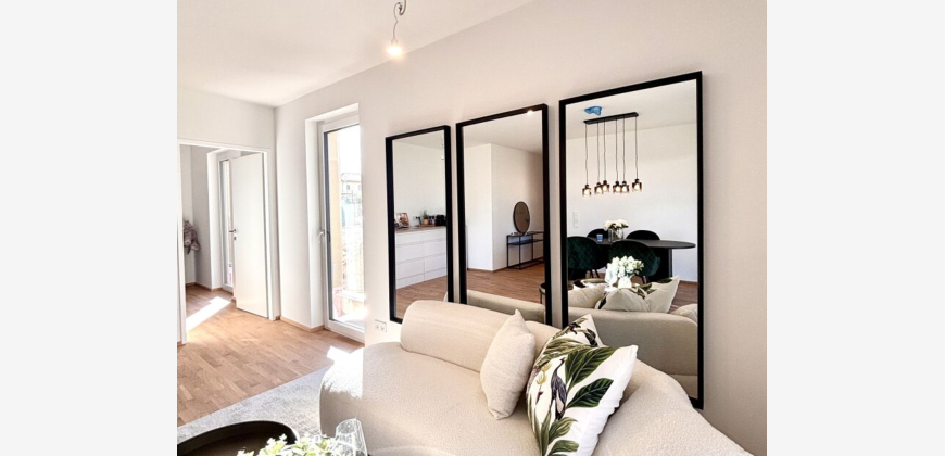 Die wunderschöne 4-Zimmer-Wohnung ist im 2. Obergeschoss gelegen und bietet eine Wohnfläche von ca. 111,27 m² sowie eine großzügige Terrasse mit ca. 74,74 m². Durch die Erreichbarkeit der Terrasse aus jedem Raum und aus dem Bad verleiht diese Einheit besonderes Wohl- und Freiheitsgefühl. Jedem, der hier heimisch wird. Die Aufteilung gliedert sich wie folgt:
