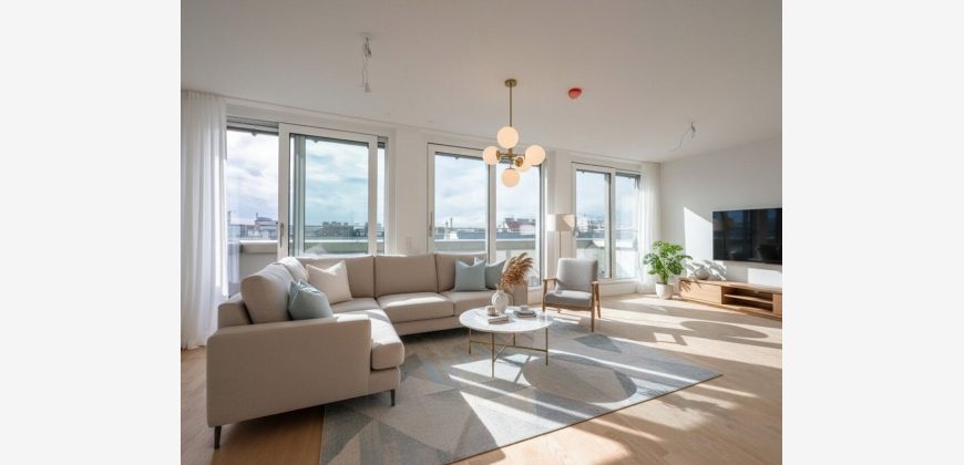 Zur befristeten Vermietung gelangt diese helle, toll aufgeteilte und sehr hochwertig ausgestattete ca. 140 m² große 4-Zimmer Neubauwohnung mit Terrasse in einem einzigartigen Neubau in toller