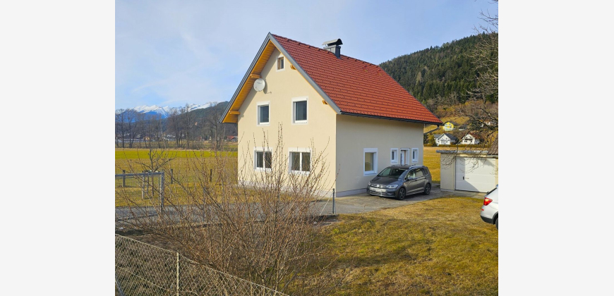 Mit einer Fläche von ca. 120 m² und 5 hellen Zimmern bietet es viel Platz für eine Familie oder ein Paar, das großzügiges Wohnen schätzt. Ein Rohdachboden von ca. 50 m² bietet ebenfalls Platz für Lagermöglichkeiten. In das schöne Haus wurde viel investiert, damit sich die Mieter wohlfühlen. Die Fenster, das Dach, die Heizung, die Fassade, die Böden, die Küche, die Türen, die beiden Badezimmer uvm. wurden komplett erneuert und mit viel Liebe gestaltet. Moderne Fliesen und das edle helle Parkett verleihen dem Haus ein elegantes Ambiente und sorgen für ein angenehmes Wohngefühl. In der neuen und vollausgestatteten Einbauküche haben Sie genug Platz zum Kochen. Die beiden Badezimmer, jeweils mit Dusche, lassen keine Wünsche offen. Besonders praktisch: Das Bad im Erdgeschoss verfügt über ein Fenster, das für ausreichend Tageslicht sorgt. Auch für Ihre Fahrzeuge ist gesorgt. Eine geräumige Garage sowie zwei Stellplätze bieten ausreichend Platz für Ihre Autos. Ein schöner Ausblick auf die umliegende Bergwelt, der jeden Tag aufs Neue begeistert. Die Verkehrsanbindung ist dank der nahe gelegenen Bushaltestelle und der nur ca. 2 Minuten Entfernung zur Autobahn A10 optimal und ermöglicht eine schnelle und unkomplizierte Anbindung an die umliegenden Städte und nach Villach. Die Betriebskosten werden auf ca. € 300,-- geschätzt. Da das Haus nicht dauerhaft bewohnt wurde, sind die Kosten nur eine Annahme. Nutzen Sie die Chance und lassen Sie sich von diesem Haus verzaubern. Vereinbaren Sie noch heute einen Besichtigungstermin und überzeugen Sie sich selbst von den Vorzügen dieser Immobilie. Wir freuen uns auf Sie! Wir bitten Sie aus rechtlichen Gründen, Anfragen zur Liegenschaft ausschließlich per E-Mail an