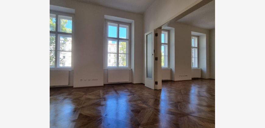 Geräumiges Vorzimmer, zwei große Zimmer mit Blick auf den Ring, hofseitiges Schlafzimmer, Badezimmer (Dusche, Doppelwaschbecken, Handtuchheizkörper, Heizstrahler, Anschlussmöglichkeiten für Waschmaschine und Wärmepumpentrockner), separate Toilette, begehbarer Kleiderschrank. Die Küche ist mit neuen Bosch Geräten ausgestattet -Induktionsherd, Geschirrspüler, Kühl-Gefrier-Kombination, Umluftabzug, Mikrowelle, Spüle sowie Ober- und Unterschränke Original Tafelsternparkett in den straßenseitigen Räumen, Fischgrätparkett in den übrigen Räumen.