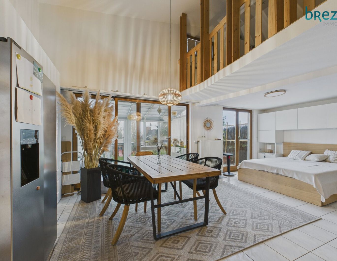 Über eine Holzstiege gelangt man in die Schlafgalerie sowie Abstellraum und zweites WC