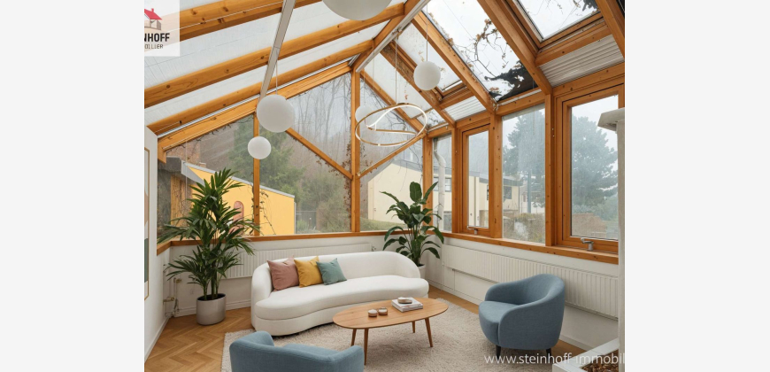 In Breitenfurt, wenige Minuten von der Stadtgrenze zu Wien entfernt, befindet sich dieses Reihenhaus in einer ruhigen Anlage aus den späten 70er Jahren. Der Zahn der Zeit hat genagt, es sind hier sicherlich einige Sanierungen zu setzten. Ich habe mir erlaubt einige Fotos als Vergleichsbilder mit KI zu bearbeiten und für Sie einzurichten. Im Erdgeschoß befindet sich der Wohnbereich mit der Küche, dem Essplatz und dem Wohnzimmer. Von hier kommen Sie sowohl in den West- als auch in den Ostgarten. Natürlich gibt es hier ein WC. Highligt ist der Wintergarten! Im Obergeschoß befinden sich 3 Schlafzimmer, ein Bad, die Loggia und ein weiterer Wintergarten. Im Keller befindet sich ein Wellnessbereich und ein Weinkeller. die laufenden Kosten für das oben genannte Objekt sind wie folgt: Uniqa HH-Versicherung