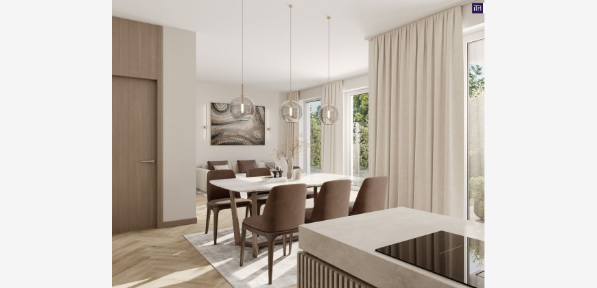 direkt am Wasser und am Murradweg profitieren. Jeder Einheit steht ein großzügiger Garten zur Verfügung, der Raum für Erholung und Privatsphäre schafft! Die durchdachten Grundrisse bieten auf 103,71 m² Wohnfläche Platz für alles was das Herz begehrt! Der offene Wohn-Essbereich mit einer Fläche von 41 m² bildet das Herzstück des Hauses und eignet sich perfekt für gemeinsames Kochen, Essen und Entspannen. Im Obergeschoss finden Sie die 3 Schlafzimmer , wovon zwei mit direktem Zugang zum Balkon und viel Privatsphäre begeistern. Durch zusätzliche Abstellräume, einen Wirtschaftsraum und clever genutzte Flächen wie den Stauraum unter der Treppe sind die Villen optimal für den Alltag einer modernen Familie gestaltet.