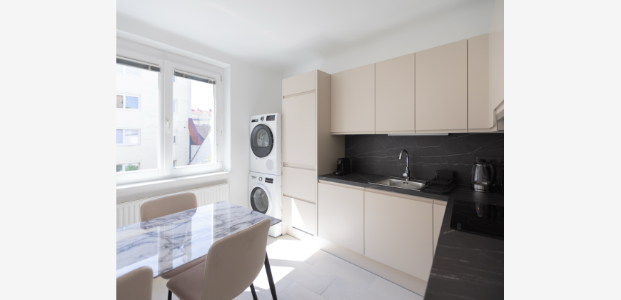 Zwei gut geschnittene Zimmer, eine separate Küche, ein Vorzimmer, ein Abstellraum sowie Bad und WC getrennt sorgen für hohen Wohnkomfort im Alltag. Zusätzlich steht ein Kellerabteil zur Verfügung. Das Gebäude wurde im Jahr 1969 errichtet. Die Wohnung wurde 2024 saniert und befindet sich in einem sehr guten Zustand. Sie wird vollständig möbliert vermietet und ist hochwertig und geschmackvoll eingerichtet. Sämtliche Möbel verbleiben in der Wohnung, ebenso die komplette Ausstattung bis hin zu kleineren Haushaltsgeräten. Die hochwertigen Möbel und Geräte wurden in den Jahren 2024 und 2025 angeschafft. Zur Ausstattung zählen unter anderem hochwertige Möbel, Bosch-Küchengeräte sowie Bosch Hausgeräte . Ein besonderer praktischer Vorteil ist, dass die Betten über großen Stauraum verfügen und dadurch zusätzlichen Platz für Aufbewahrung bieten. Die Wohnung verbindet eine angenehme Wohnatmosphäre mit hoher Alltagstauglichkeit und eignet sich ideal für Menschen, die ohne zusätzlichen Aufwand in ein gepflegtes und hochwertig ausgestattetes Zuhause einziehen möchten. Besonders geeignet ist sie für Familien , Paare , Expats, Singles oder 2 Studierende / WG .