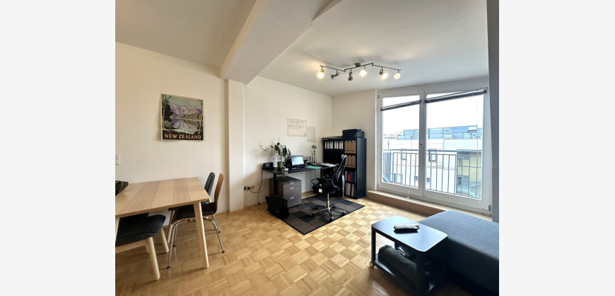 Diese freundliche und sehr helle Wohnung besticht besonders durch ihre lichtdurchfluteten Räume und ihr perfektes Wohnraumkonzept, bestehend aus Vorraum, einem Schlafzimmer, einem Wohn-Essbereich mit Küche sowie einem Badezimmer mit Dusche, einem getrennten WC und Balkon. Die Küche ist bestehend aus einem Kühlschrank mit Gefrierfach, E-Herd mit Backrohr, Dunstabzug und einer Spüle.