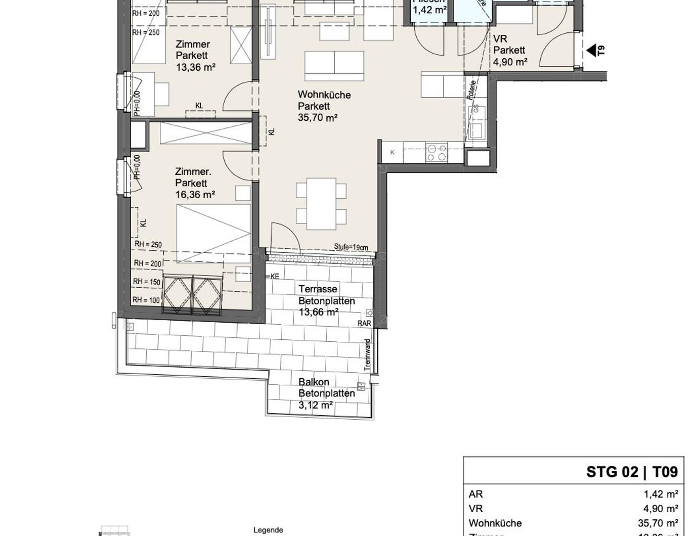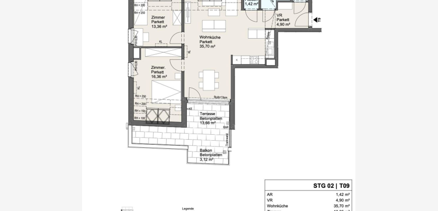 Stg. 2 Top 09 | 3 Zimmer | ca. 80 m² + ca. 17 m² Freifläche