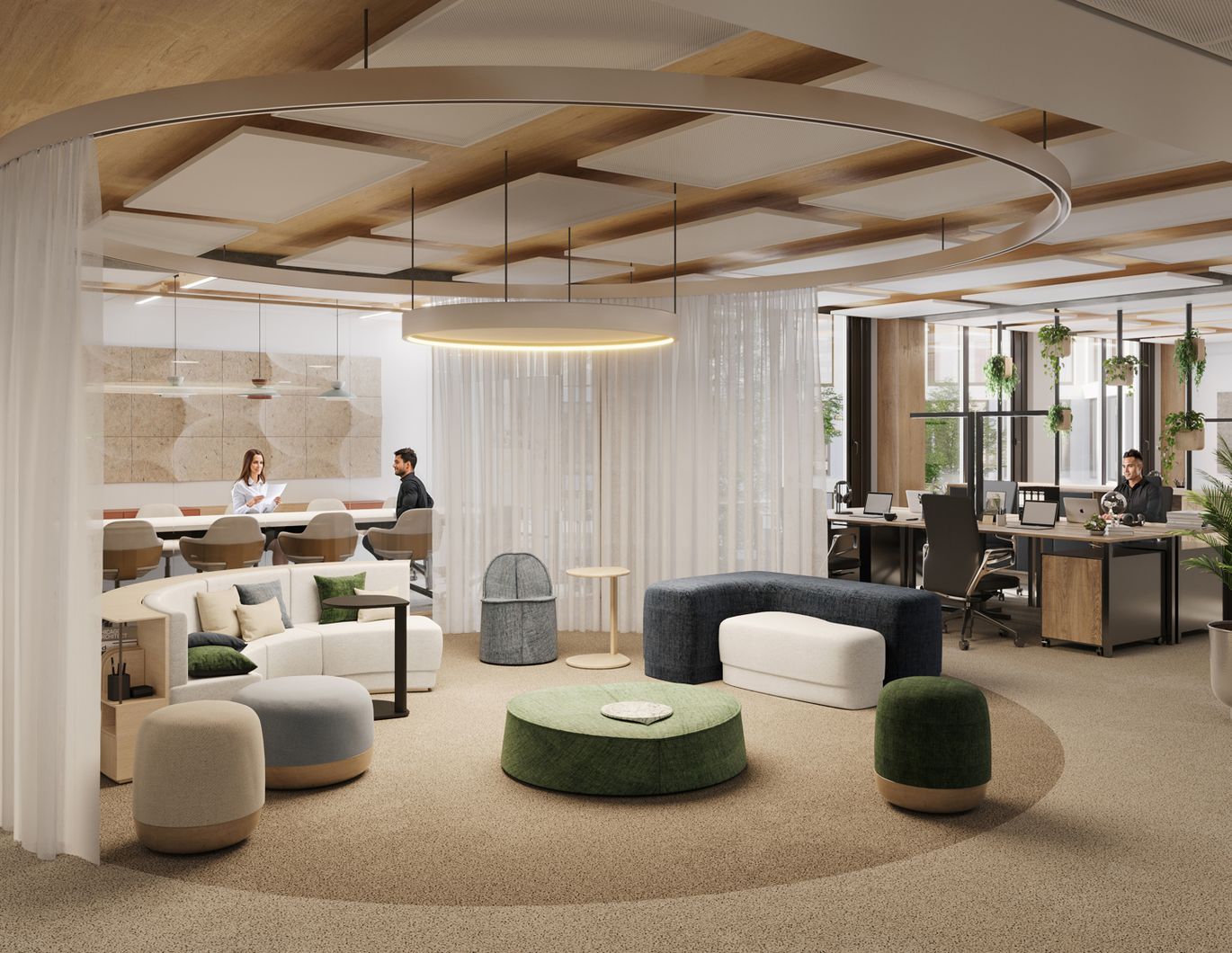 - Heizung/Kühlung: Heiz- und Kühldecken, individuell regelbar