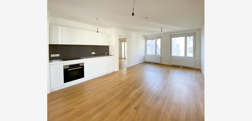 Zwischen Prater und Innenstadt befindet sich dieses 2018 errichtete Gebäude in einem neu entstehenden, aufstrebenden Stadtteil im dritten Bezirk in Wien. Es ist eingebettet in einem Gebäudekomplex mit mehreren Blöcken, die von zwei Architekturbüros mit besonderer Designqualität gestaltet wurden, und in deren Mitte sich ein Ort der Begegnung befinden wird. Die im 4. OG gelegene 2,5-Zimmer-Wohnung Top 11.27 erstreckt sich insgesamt auf ca. 62 m² mit ca. 11 m² Balkonfläche (zwei Balkone) und teilt sich wie folgt: großer Vorraumbereich mit separatem WC mit Handwaschbecken und großer Schranknische, Wohnküche mit Küchenblock und Zugang zum ersten, westseitigen Balkon, Schlafzimmer mit Badezimmer en suite mit Wanne, Waschtisch, Handtuchheizung und Waschmaschinenanschluss und Zugang zum zweiten, südseitigen Balkon. Für die Erstellung des Wohnungsmietvertrages verrechnet die Hausverwaltung eine einmalige Gebühr in Höhe von € 349,00 brutto.