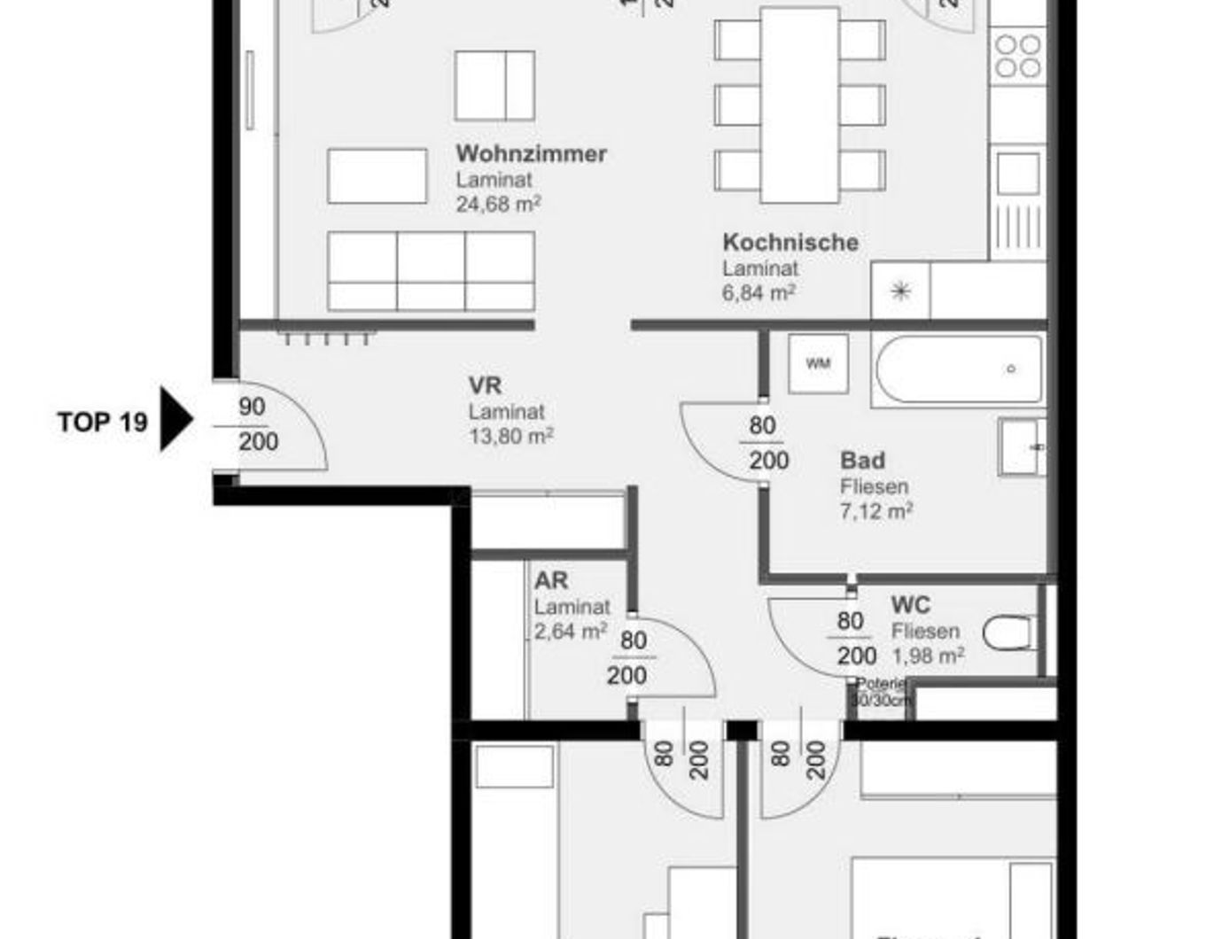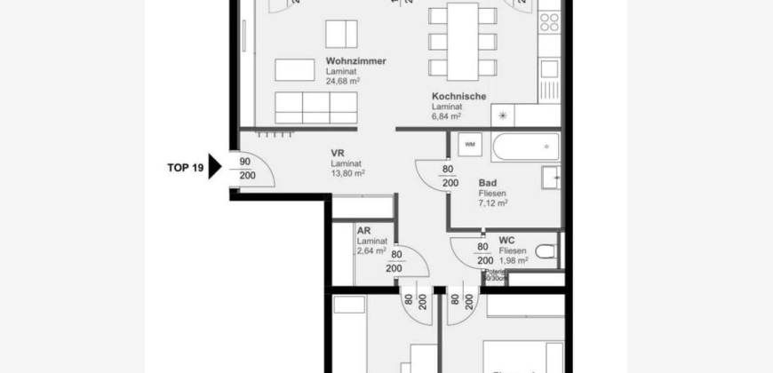 Die Wohnung gliedert sich in folgende Räumlichkeiten: