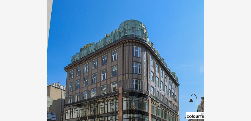 des 1. Bezirks gelangt eine großzügige Bürofläche von ca. 637 m² im 4. Liftstock eines sehr repräsentativen Bürohauses in die Vermietung. Dieses vollständig renovierte, traditionsreiche Bürohaus besticht durch drei herausragende Eigenschaften, die es einzigartig machen: Die erstklassige