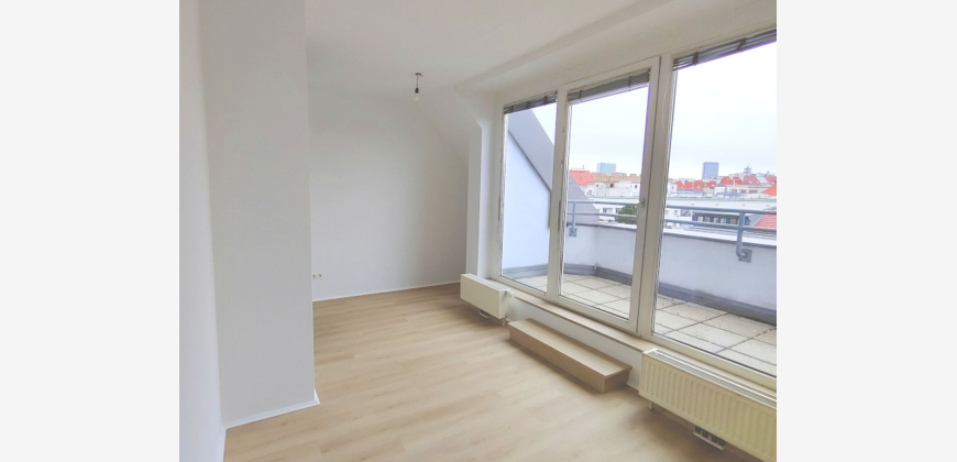 Süd-Ost ausgerichtete, sonnige neu renovierte Wohnung inkl. Terasse im ausgebauten 1. Dachgeschoss mit Blick über Wien. Im August wurde eine neue Daikin Klimaanlage mit zwei über WLAN steuerbare getrennte Splitgeräte installiert (kühlen und heizen von der Ferne aus möglich). Die zwei lichtdurchfluteten Zimmer bilden gemeinsam mit einem Vorzimmer, einem Bad und einem Abstellraum die Wohneinheit. Durch das zurückgesetzte Dachgeschoss ist die Wohnung sehr ruhig. Im Wohnzimmer gelangt man auf die Terasse. Das Schlafzimmer ist mit Dachfenster belichtet (v Bett aus sieht man den Sternenhimmel). Ausstattung: Dachausbau mit Einbauküche, Zentralheizung, neuer Klimaanlage, neuer hochwertiger Boden, Fliesenbad mit Badewanne, Fenster mit Mehrfachverglasung, Lift, TV/Internet Anschluss, Sprechanlage Gerne teilmöblierte Übernahme durch Ablöse des Vermieters (Möbel im August angeschafft) English Version via PN Laurenzgasse Straßenbahn 1, 62 und Badner Bahn in 2' erreichbar (Station unterirdisch) in 10' ist man am Karlsplatz Anschluss U2 und U4 Hauptbahnhof in 15' erreichbar (Kliebergasse Straßenbahn 18) Flughafen Wien öffentlich in 37' und 23' mit dem PKW Direkt im Erdgeschoss (mit dem Lift erreichbar) ist ein Nahversorger