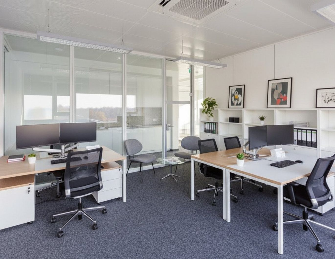 Die moderne Bürofläche umfasst 3 Räume, getrennte WCs sowie einen Gangbereich samt ausgestatteter Teeküche. Für Komfort und angenehmes Arbeiten sorgen die elektrische Beschattung sowie die für jeden Raum einzeln steuerbare Heizung und Kühlung. Optional sind ausreichend Tiefgaragen-Stellplätze verfügbar. Der Bürokomplex wurde 2023 in direkter Nachbarschaft zum Business Center Hagenau 1 an der L118 Oberndorferstraße errichtet. Die drei Gebäudeteile werden über eigene Eingänge erschlossen und sind über die gemeinsame Tiefgarage verbunden. Es sind 39 Büroeinheiten entstanden, die auf einer Ebene zu 200, 300 oder 400 m² Bürofläche inkl. Teeküche und Sanitärräume zusammengefasst werden können. Überblick: