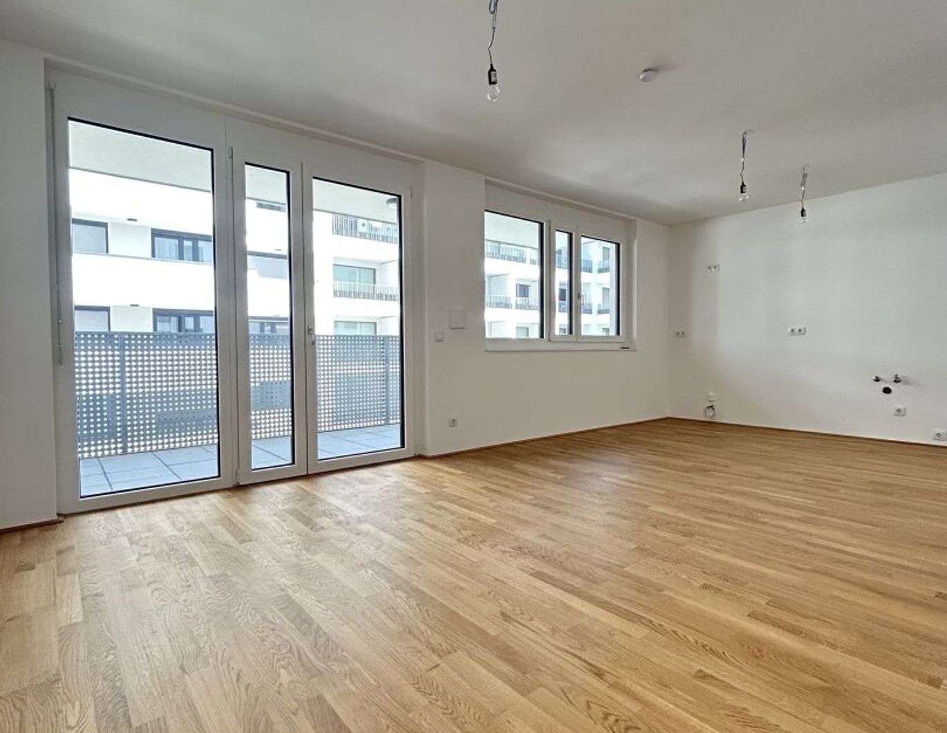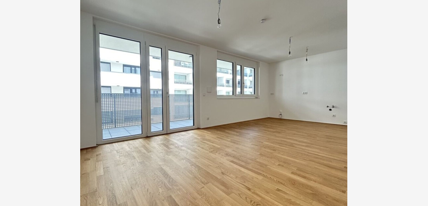 Diese rund 50 m² große 2-Zimmer-Wohnung betreten Sie über einen einladenden Vorraum, der ausreichend Platz für eine moderne Garderobe oder einen geräumigen Schrank bietet. Von hier aus gelangen Sie zentral in alle weiteren Räume. Das Badezimmer ist mit einer Dusche, einem Waschbecken samt Spiegel, einer Toilette sowie einem Anschluss für die Waschmaschine ausgestattet. Eine Balkontür aus Milchglas führt direkt ins Freie und sorgt für angenehme Belüftung und natürliches Licht. Die helle Wohnküche ist großzügig geschnitten und bietet genug Raum für eine gemütliche Sitzecke sowie einen Essbereich. Alle notwendigen Anschlüsse für die Umsetzung Ihrer individuellen Traumküche sind bereits vorhanden. Ein besonderes Highlight der Wohnung ist der großzügige Balkon mit 11,06 m2, der sich über die gesamte Wohnungsbreite erstreckt. Dieses private Freiluft-Refugium lädt zu entspannten Stunden und geselligen Abenden ein