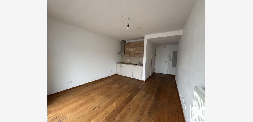ca 24,97 m2: ein kompakter Raum (Parkettboden) mit Kochnische und Vorraum, Badzimmer und Balkon.