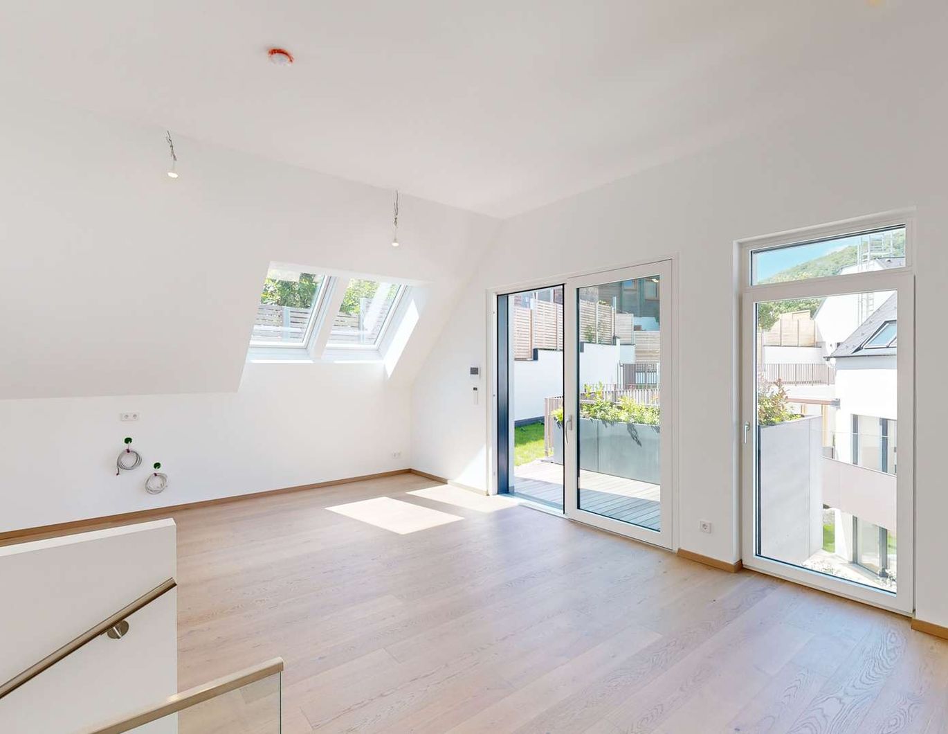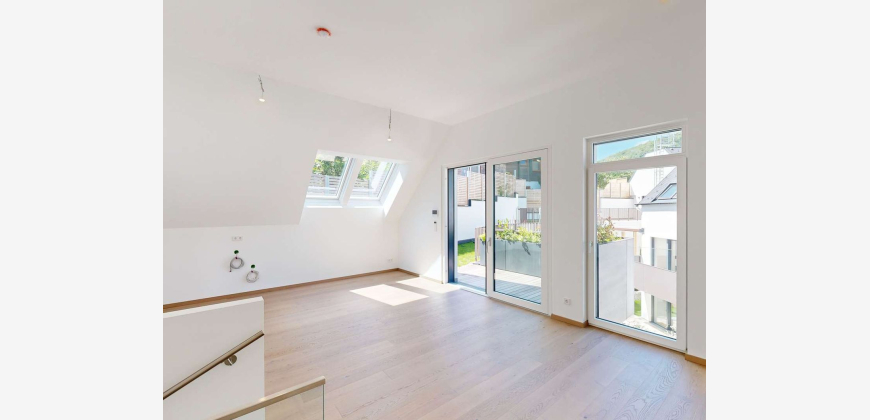 Der im Obergeschoß gelegene Garten macht diese Wohnung zu einer einzigartigen Immobilie. Der an den Garten anliegende Balkon erweitert die Außenfläche um weitere 7 m². Komplettiert wird das Obergeschoß vom Wohn- Essbereich inklusive Küche. Die drei Schlafzimmer befinden sie ebenso in der unteren Ebene, wie das Badezimmer. In den Wohnräumen sind Landhausdielen in Eiche der Qualitätsmarke Scheucher verlegt. Die Feuchträume sind mit hochwertigem Feinsteinzeug ausgekleidet sowie mit Keramik der Linie Laufen Pro ausgestattet. Ausreichend Stauraum bieten Ihnen die Schranknischen in den Schlafzimmern, dem Eingangsbereich sowie ein Abstellraum im Untergeschoß. Der Wohnung ist ein 6,75 m² Kellerabteil zugeordnet.