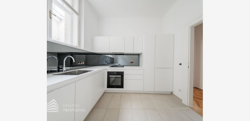 Zur unbefristeten Vermietung gelangt eine stilvolle 3-Zimmer Altbauwohnung im 4. Wiener Gemeindebezirk. Die Wohnung befindet sich im 2. Obergeschosses eines wunderschönen Altbaus aus dem Jahr 1910 und ist bequem über einen Lift erreichbar. Die großzügige Wohnfläche von ca. 165 m² gliedert sich in ein großes Entrée, 3 Zimmer, 2 Bäder, eine Küche, einen Abstellraum und ein Gäste-WC. Zusätzlich verfügt die Wohnung über eine charmante Loggia. Beheizt wird die Wohnung mittels Gasetagenheizung. Für warme Sommertage ist die Wohnung mit einer Kühlung ausgestattet. Wunderschöner Fischgrätparkett in den Wohnräumen und moderne Fliesen in den Nebenräumen verkleiden elegant den Boden. Die schönen hohen Fenster, sowie Flügeltüren verleihen der Wohnung den berühmten Charme eines Wiener Altbaus. Sie betreten die Wohnung und befinden sich im Vorraum, gerade durch gelangen Sie in den großen Salon, der genug Platz für eine gemütliche Sitzecke und einen Esstisch bietet. Vom Entrée links in den Flur befindet sich linkerhand die komplett ausgestattete, neue Küche mit Fenster. Rechts gelangen Sie in eines der Zimmer mit en-suite Badezimmer, welches mit einer Dusche und einem Waschbecken ausgestattet ist. Im Flur weiter gerade durch gelangen Sie in das zweite und sehr geräumige Zimmer mit en-suite Badezimmer. Dieses ist mit einer Badewanne, einer Dusche, einem Doppelwaschbecken, einem Handtuchtrockner und einem WC ausgestattet. Zwischen Zimmer und Bad befindet sich ein Raum, der sich perfekt als Schrankraum eignen würde. Der Abstellraum ist mit einem Waschmaschinenanschluss ausgestattet und befindet sich so wie die separate Toilette im Vorraum. Die