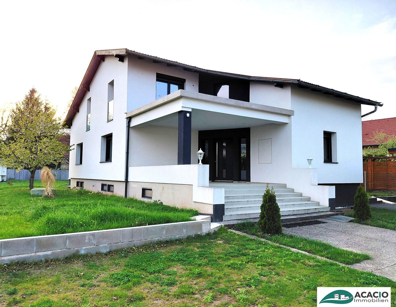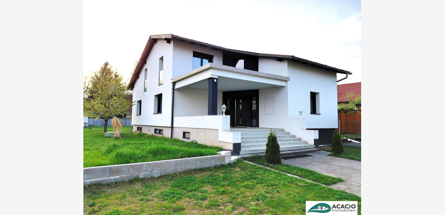 Das niveauvolle Einfamilienhaus besticht durch seine sonnige Südwest-Ausrichtung. Das Mietobjekt befindet sich in Grünruhelage mit schönem großen Garten, der zum Verweilen einlädt. Jede Menge Stauraum ist im Kellergeschoss gegeben. Das in Massivbauweise (Stahlbetonkeller, Ziegelmauerwerk) errichtete Wohnhaus wurde komplett mit viel Liebe zum Detail revitalisiert. Die rund 110 m² Wohnnutzflächen gliedern sich in ein Wohn- Esszimmer mit 56 m², eine Küche mit 10 m², ein Schlafzimmer mit 16 m², ein Kinderzimmer mit 9 m² sowie Bad und WC mit 5 m² und einem großzügigen Vorraum mit 15 m². Die südostseitige Terrasse vor dem Eingangsbereich umfasst rd. 20 m² und lädt zum gemütlichen Verweilen ein. Auf der südwestseitigen Terrasse kann man den Tag bei der Abendsonne ausklingen lassen. Eine Fußbodenheizung wurde eingebaut, die Böden (hochwertige Parkettböden) und Fliesenböden neu verlegt. Beheizt wird klimafreundlich mit einer Wärmepumpe. Das Objekt ist teilmöbliert, die niveauvolle Küche ist ebenso vollständig neu. Das Objekt wird zum ersten Mal nach der Komplettrenovierung vermietet. Eine Mietdauer von bis zu 10 Jahren ist möglich. Haustiere sind nicht gestattet. Der Immobilienmakler erklärt, dass er