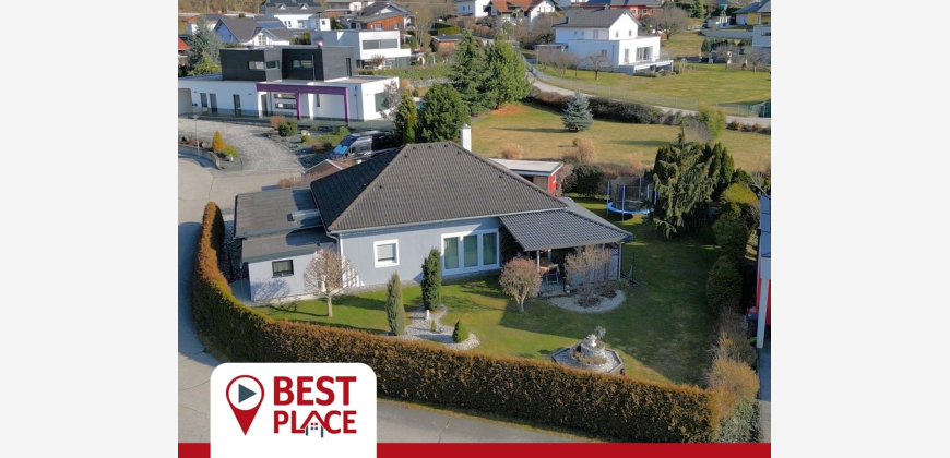 von Brückl In einer besonders ruhigen und sonnigen Wohnlage von Brückl befindet sich dieser charmante Bungalow aus dem Jahr 2007, der auf 85 m2 alles bietet, was ein glückliches Leben braucht: Licht, Offenheit, Privatsphäre und im liebevoll gestalteten Garten viele verschiedene Kuschelecken. Der stufenfreie Bungalow eignet sich ideal für Menschen, die komfortables Wohnen auf einer Ebene schätzen und auch für Kleinfamilien, die später mal das Dach ausbauen wollen, falls es notwendig wird. Große Fensterflächen lassen viel Tageslicht ins Haus und verbinden Innen- und Außenraum auf harmonische Weise. Der Grundriss ist praktisch und zugleich wohnlich gestaltet: Ein helles Wohnzimmer, zwei Schlafzimmer, eine Küche sowie Bad und WC getrennt sorgen für einen fröhlich angenehmen Alltag. Für zeitgemäße Energieeffizienz sorgt eine Luftwärmepumpe, die das Haus nachhaltig beheizt. Ein echtes Highlight ist der mit viel Gefühl und Erfahrung angelegte Garten. Unterschiedliche Bereiche laden zum Rückzug, Ausspannen, Gärtnern und Spielen ein. Zwei Gartenhütten, eine überdachte Terrasse sowie ein gemütlicher Partyraum hinter dem Carport schaffen üppige Möglichkeiten für schöne Freizeit allein oder mit Freunden. Das Dach bietet Ausbaupotenzial für weitere rund 40 m² Wohnfläche. Dort wo jetzt die Garderobe ist, kommt die Stiege hin, so ist es geplant. Ein Zuhause für Menschen, die ruhiges und modernes Wohnen in Verbindung mit der Natur und netter Nachbarschaft schätzen.