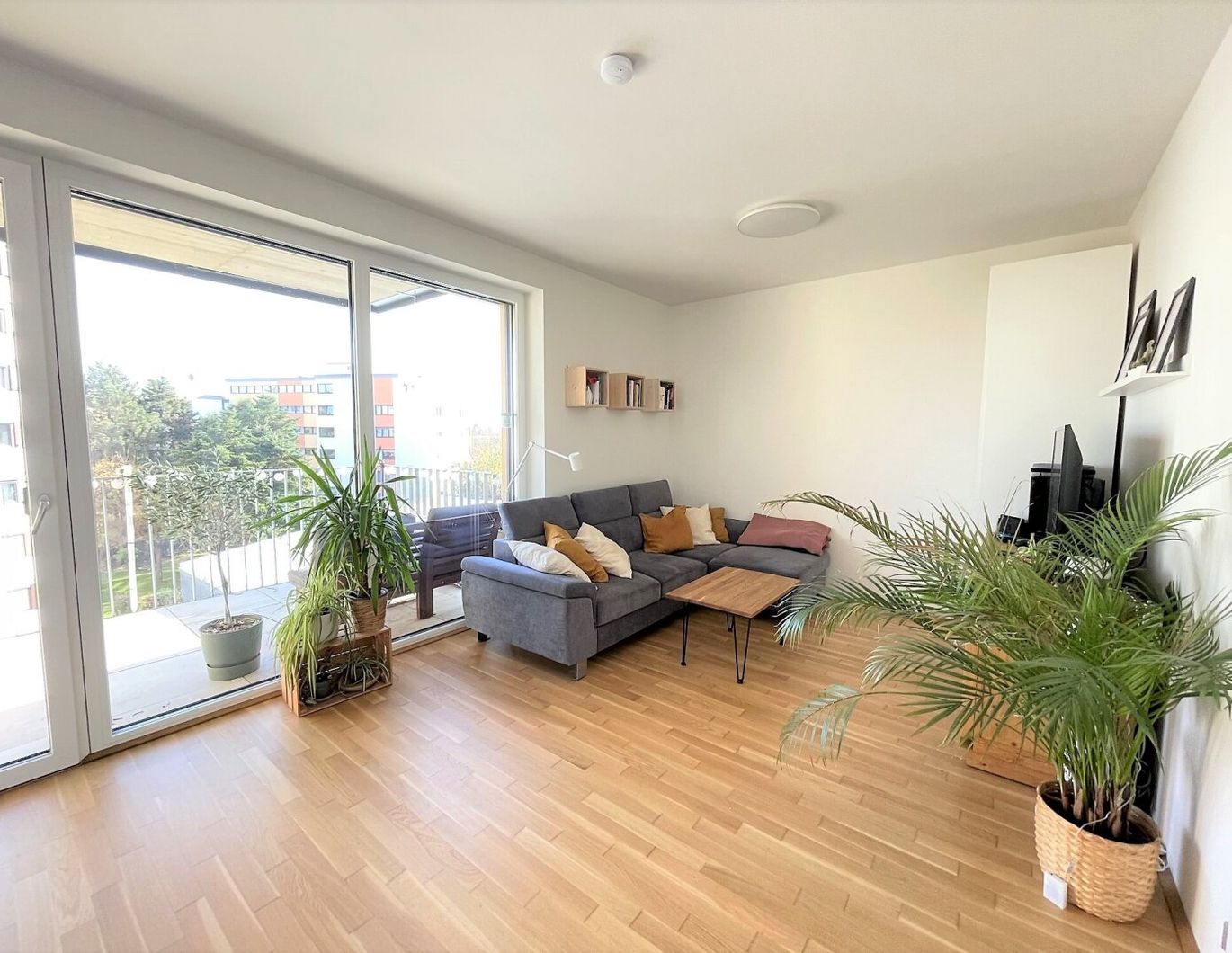 Die Wohnung besticht besonders durch ihre hochwertige Ausstattung und die perfekte Raumaufteilung, bestehend aus Vorraum, einem großem Wohn-/Essbereich mit moderner Küche und Ausgang auf den Balkon, zwei getrennt begehbaren Schlafzimmern sowie Badezimmer mit einer ebenerdigen Dusche und extra WC. Vom Wohnzimmer aus gelangt man auf den Balkon, welcher zum Entspannen im Freien einlädt. Die großen Fenster- und Glasflächen, welche die Wohnung mit Tageslicht durchfluten, schaffen ein sehr angenehmes Wohnambiente.