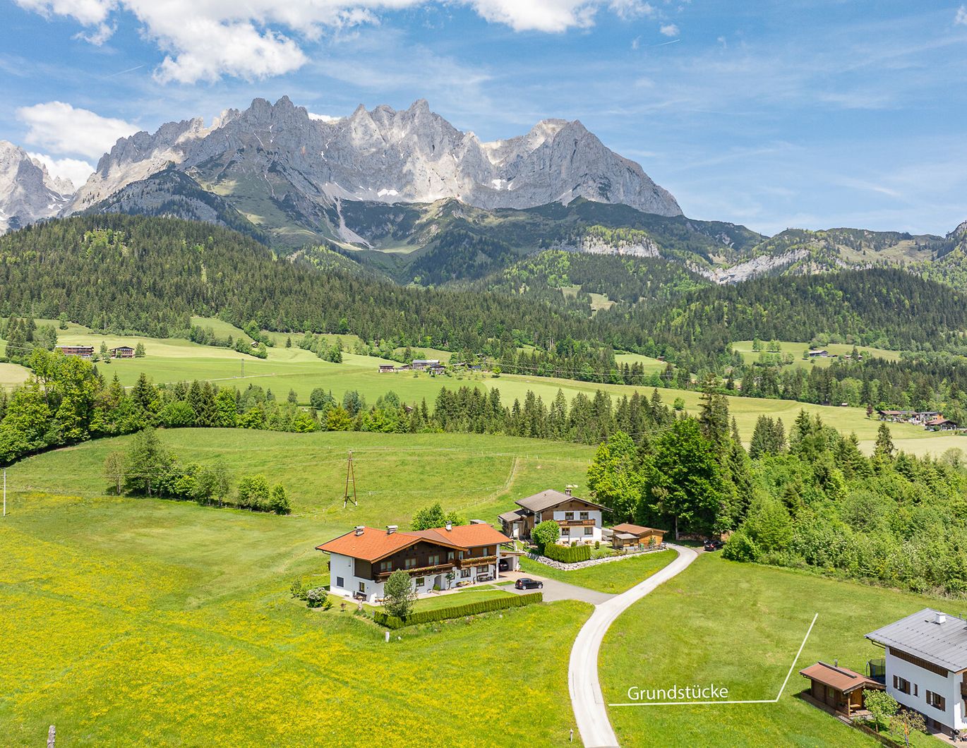 Zum Verkauf stehen zwei Grundstücke in absoluter Toplage und unmittelbarer Nähe zum berühmten Stanglwirt. Die Grundstücke liegen leicht erhöht auf einem kleinen sonnigen Plateau und bieten einen 360° Panoramablick auf die Kitzbüheler Bergwelt.