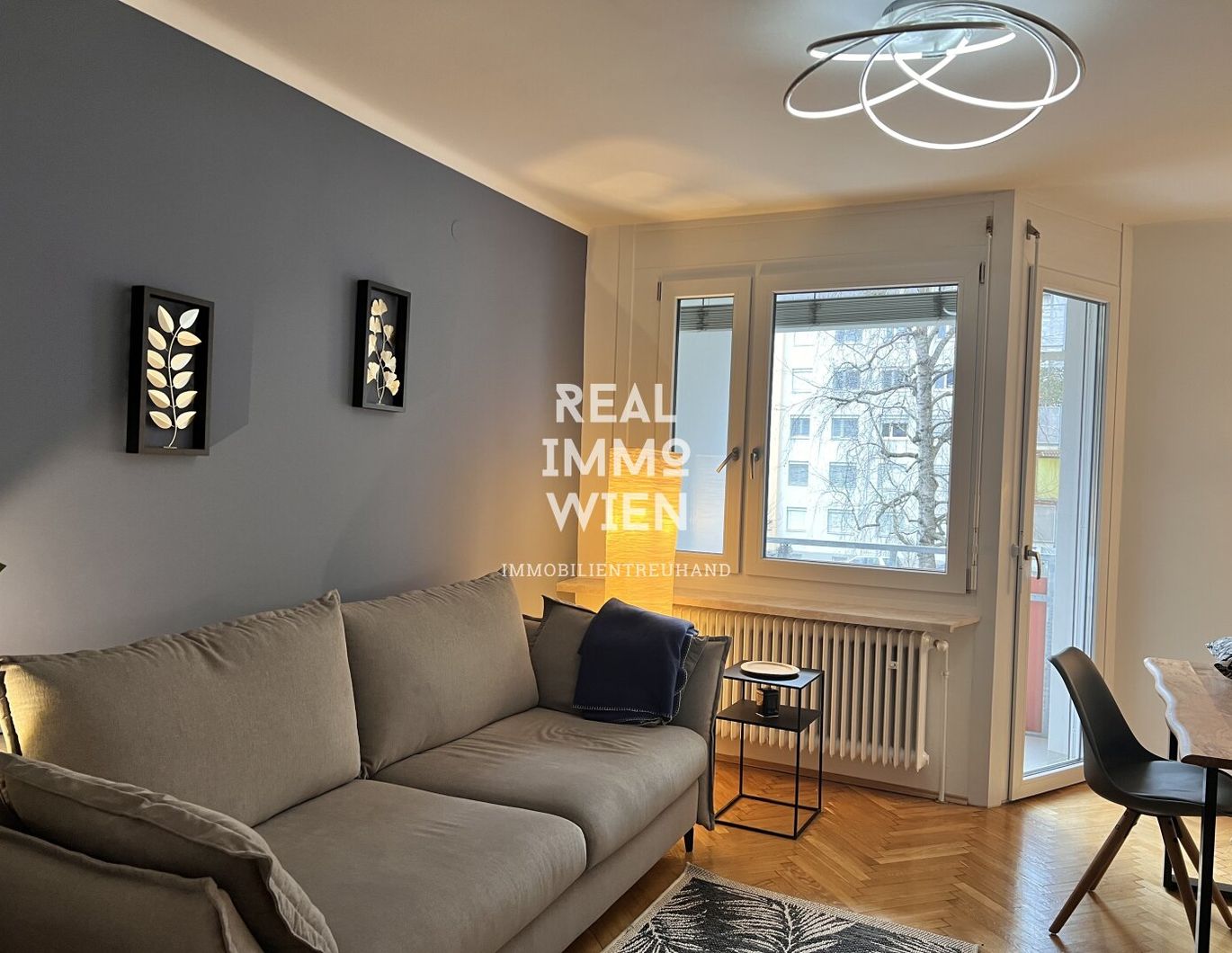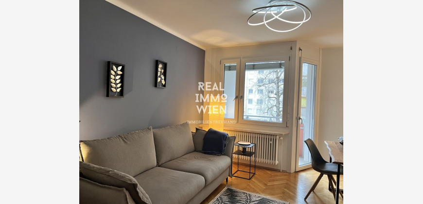Die stilvolle Wohnung ist aufgeteilt in Vorraum, Wohnzimmer, Küche, Badezimmer mit separatem WC, 2 Schlafzimmer und Balkon.