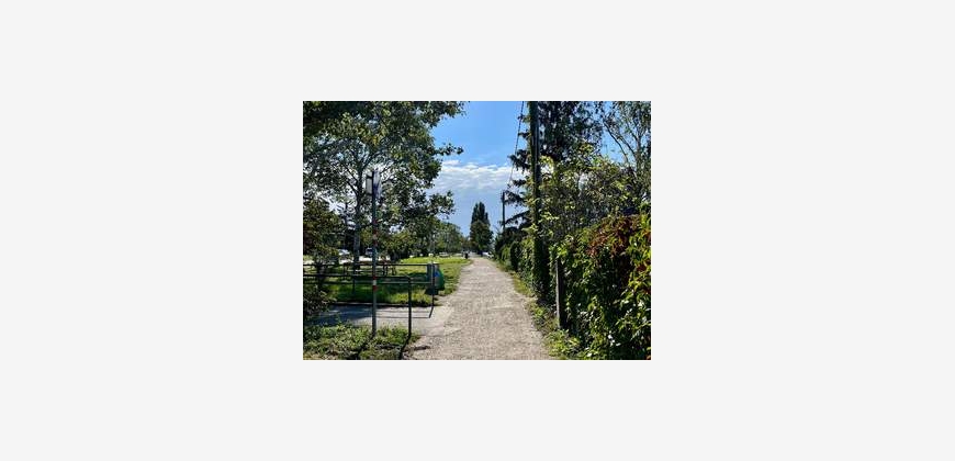Die Wohnung liegt in angenehmer Grün- und Ruhelage. Die eine Seite der Wohnung (unter anderem auch das Schlafzimmer) ist in den grünen und weitläufigen Innenhof ausgerichtet; die andere Seite der Wohnung ist in eine Sackgasse angrenzend an einen Park ausgerichtet; man hört demnach keine Straße/Autos/Verkehr in die Wohnung.