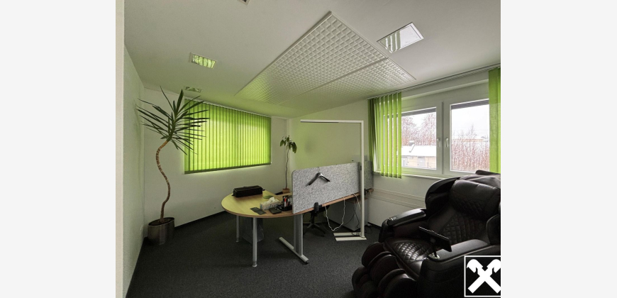 Büroflächen in verschiedensten Größen Büros ab rd. 13 m² bis rd. 30 m² Gemeinsame Nutzung der Gemeinschaftsräume incl. Besprechungsraum, Teeküche und Sanitäranlagen Ausreichend Parkplätze und Lagerflächen Sanierungsbedürftige Wohnung bei Bedarf vorhanden Miete Büroflächen :